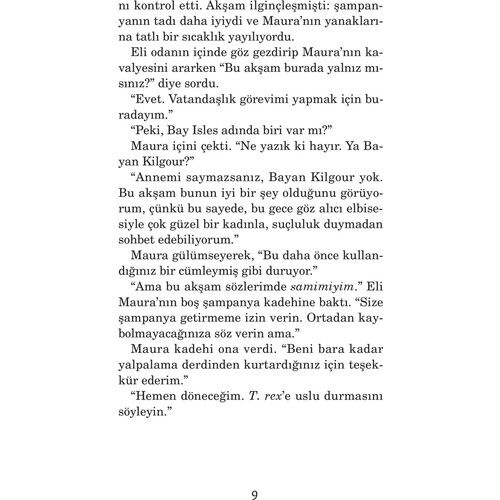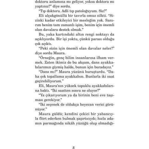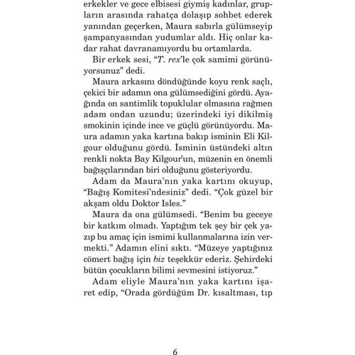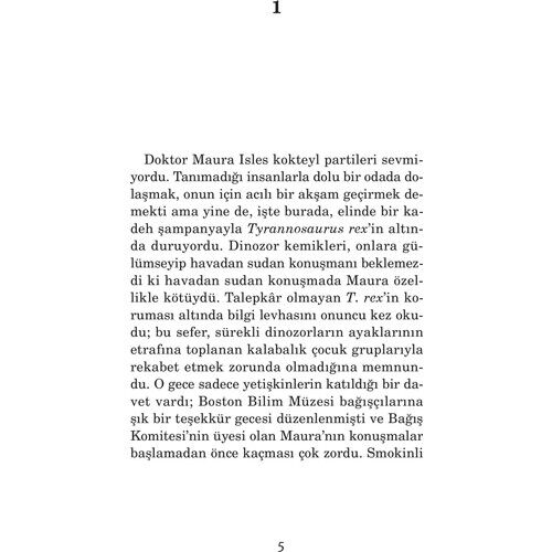 TESS GERRITSEN’DEN SOLUK SOLUĞA BİR RIZZOLI & ISLES ÖYKÜSÜ Maura Isles şık bir partiye gider. Yakışıklı bir adam ona yanaşır; hoş ve kibardır. Maura adamla flört edip şampanya içer. Ancak sonrası kocaman bir boşluktan ibarettir. Ertesi gün bildiği sadece iki şey vardır: Bir adam öldürülmüştür ve adamın cebinde Maura’nın üzerinde ev adresi yazan kartviziti bulunmuştur… Yazar Hakkında: Tess Gerritsen ABD’nin San Diego kentinde doğdu. Stanford Üniversitesi’nde antropoloji konusunda lisans yaptı, California Üniversitesi’nden tıp diploması aldı. New York Times’ın çok satanlar listesine giren Hasat’la dünya çapında başarı kazandı. Yazarın Kemik Bahçesi, Mefisto Kulübü, Cerrah, Çırak, Günahkâr, İkiz Bedenler, Ruh Koleksiyoncusu, Buz Gibi Soğuk, Sessiz Kız, Bir Sırrım Var, Kayıp Kızlar, Kan Gölü adlı romanları ve Ucubeler adlı öykü kitabı Doğan Kitap tarafından yayımlandı ve büyük okur kitlelerine ulaştı.