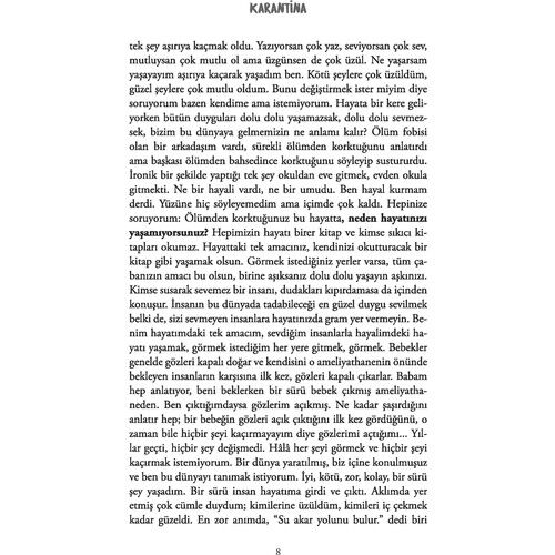 Yıldızları görebilmek için duvarları arasında yaşadığımız evimizden vazgeçtik.\"Sadece bedenlerimizi değil, ruhlarımızı da karantinaya aldılar. Ne bu karantinadan çıkabiliyoruz, ne de birbirimizden ayrılabiliyoruz. Bundan sonraki tek savaşımız bu karantinadan kurtulmak. Kurtulduğumuzda da birlikte olacağız, ama özgür…Savaş bitti, ve biz sağ kaldık.Savaş bitti, ve biz hâlâ ayaktayız."\Zeynep, yeni okuluna başladığı ilk gün kendini bir felaketin ortasında bulmuştu. Salgın bir hastalık nedeniyle okulu karantinaya alınmış, akşamında ise kendini okulun karanlık koridorlarında bir kız öğrencinin cesedinin başında bulmuştu. Üstelik yalnız değildi, onlar da yanındaydı; mahşerin diğer üç atlısı. \Bu, yalnızca bedenleri değil ruhları da karantinaya alınmış dört kişinin hikâyesi. Bu, onların özgürlüklerine ulaşmak için yaşadıkları esaretin hikâyesi. Bu, birbirlerinin her şeyi haline gelen, gökyüzündeki son yıldız yanıp kül oluncaya kadar birlikte olacaklarına söz veren dört arkadaşın hikâyesi. Bu, mahşerin dört atlısının hikâyesi.\Şimdi, bizimle misiniz?