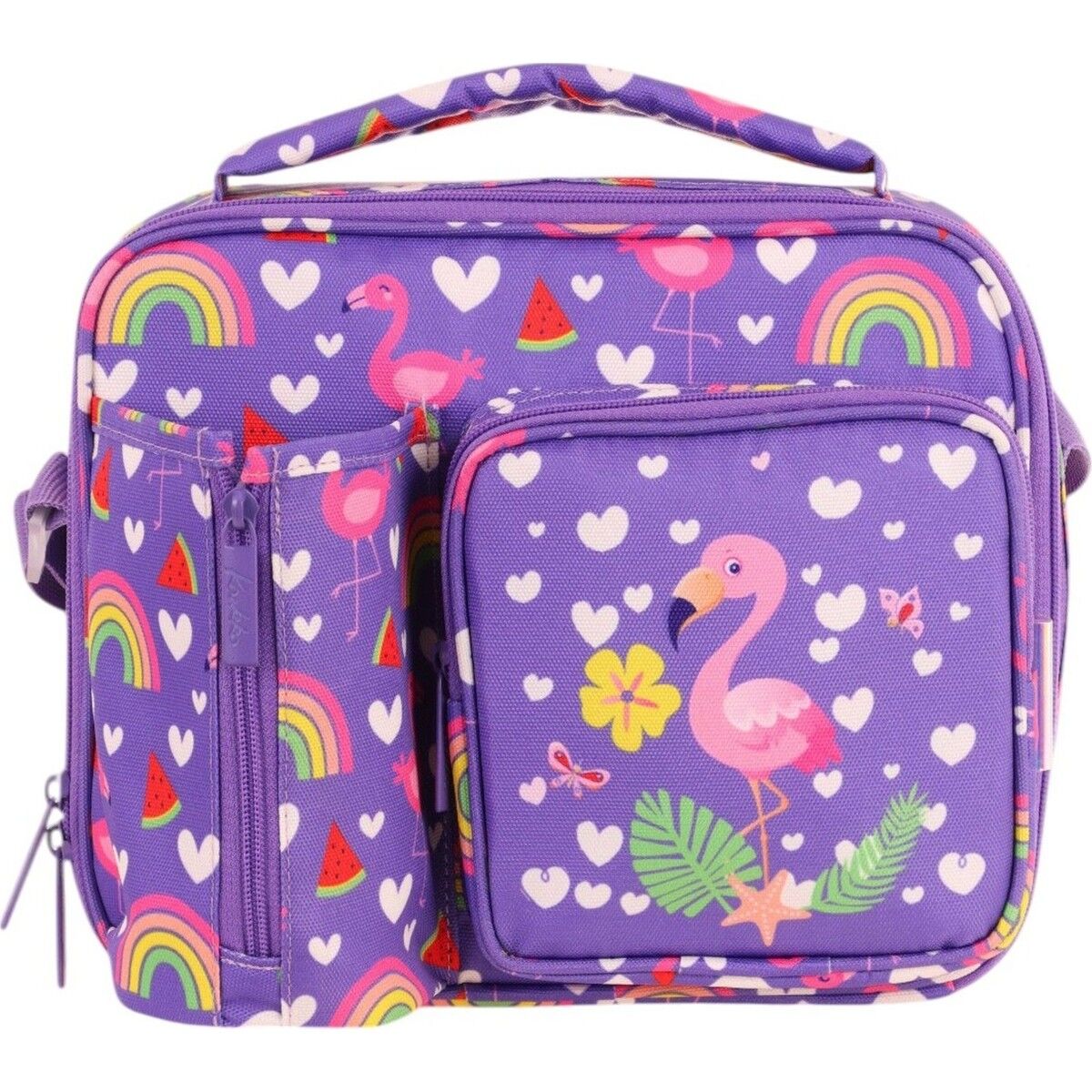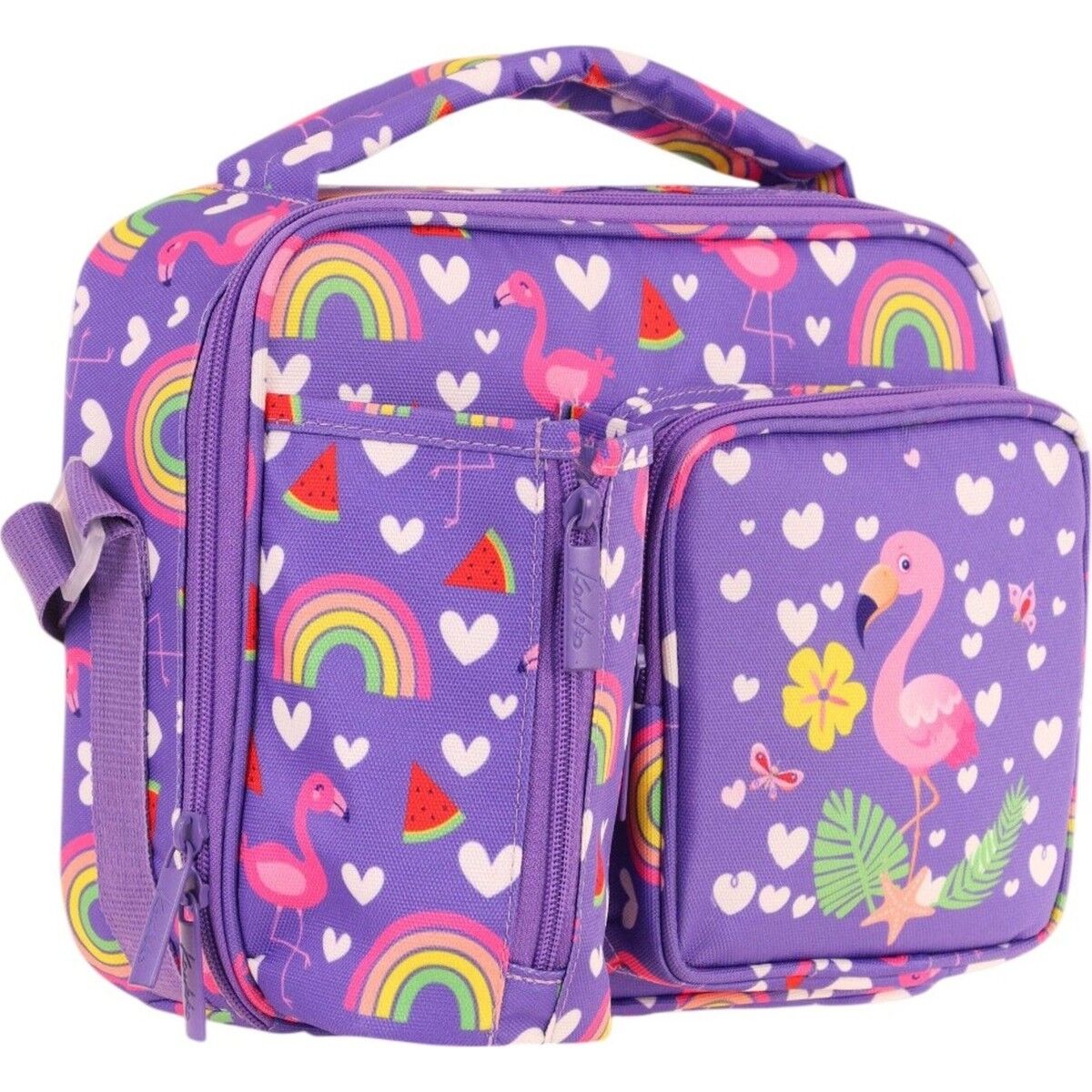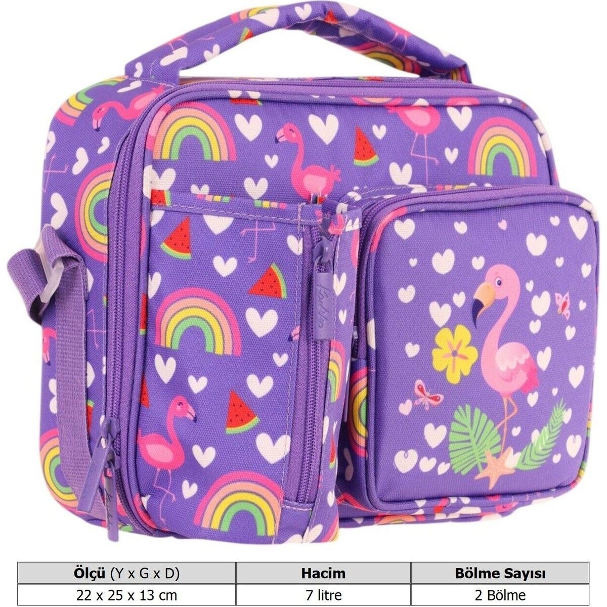 Kaukko Kız Çocuk, Pembe Mor, Flamingo Desenli Isı Yalıtımlı Üç Bölmeli (Matara Cepli) Okul Beslenme Çantası L7226