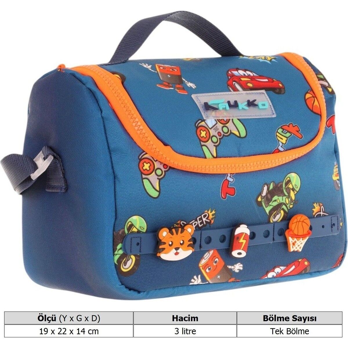 Kaukko Kids Isı Yalıtımlı, Silikon Aksesuarlı Beslenme Çantası - Lacivert Turuncu - Erkek Çocuk - L7259