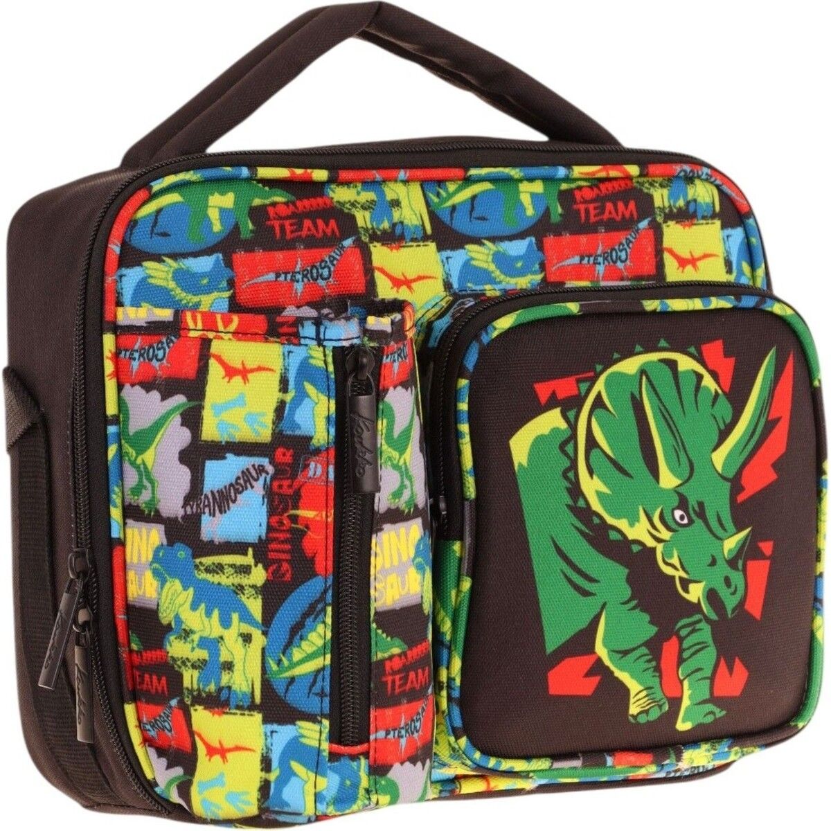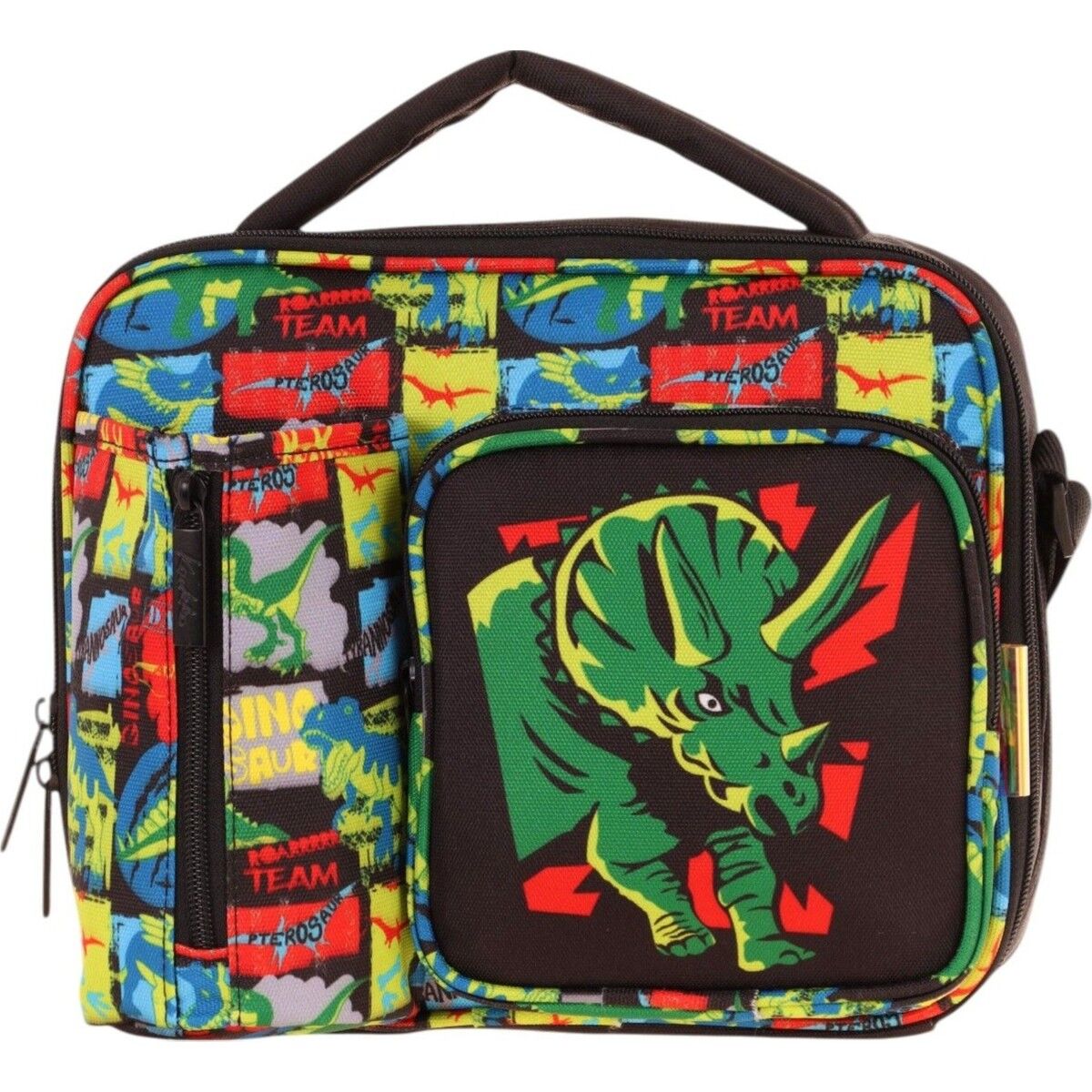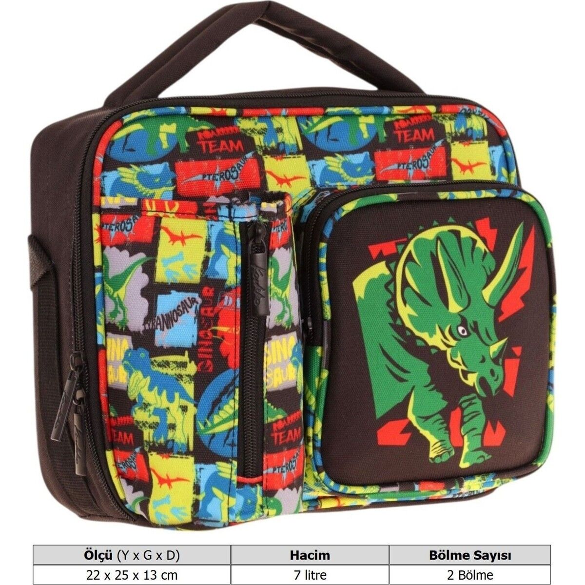 Kaukko Erkek Çocuk, Siyah Yeşil, Gergedan Baskılı Isı Yalıtımlı Üç Bölmeli (Matara Cepli) Okul Beslenme Çantası L7263