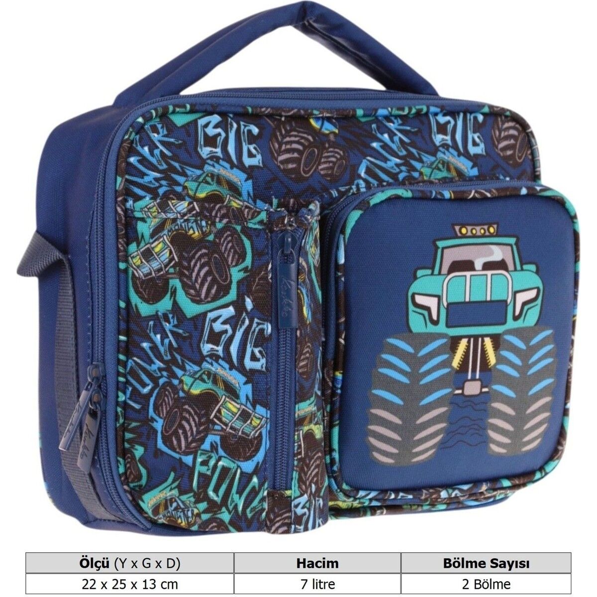 Kaukko Erkek Çocuk, Lacivert Turkuaz, Kamyon Daskılı Isı Yalıtımlı Üç Bölmeli (Matara Cepli) Okul Beslenme Çantası L7261