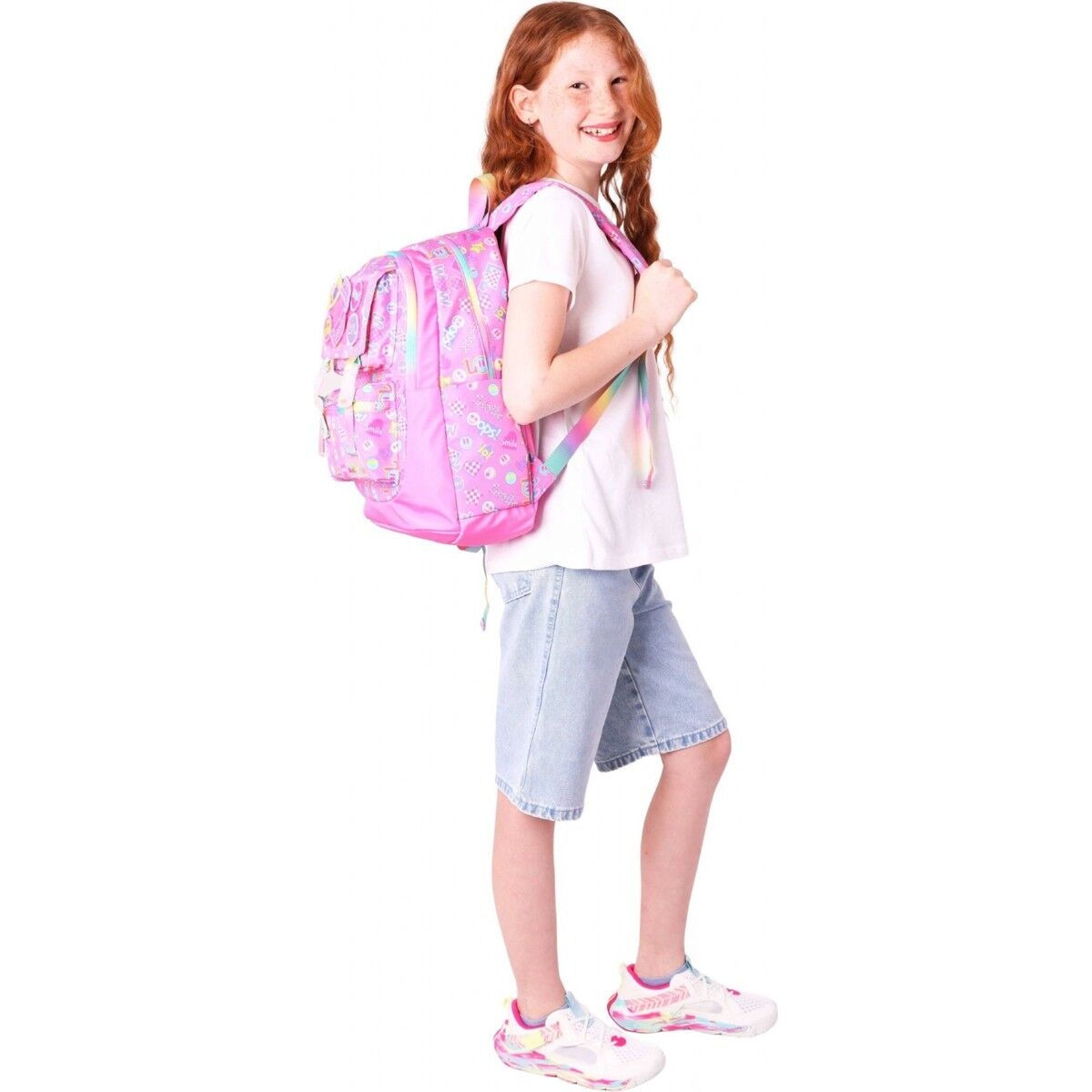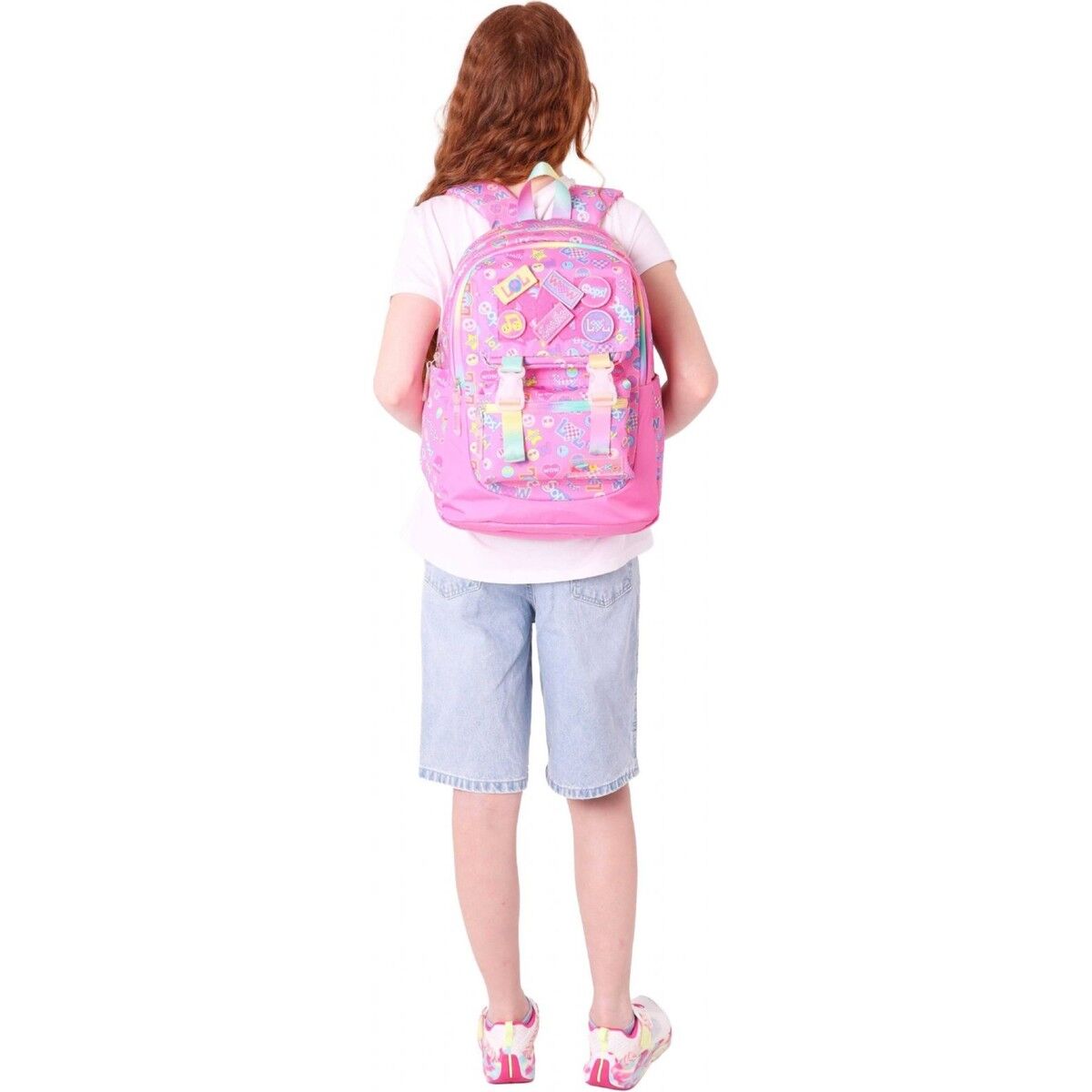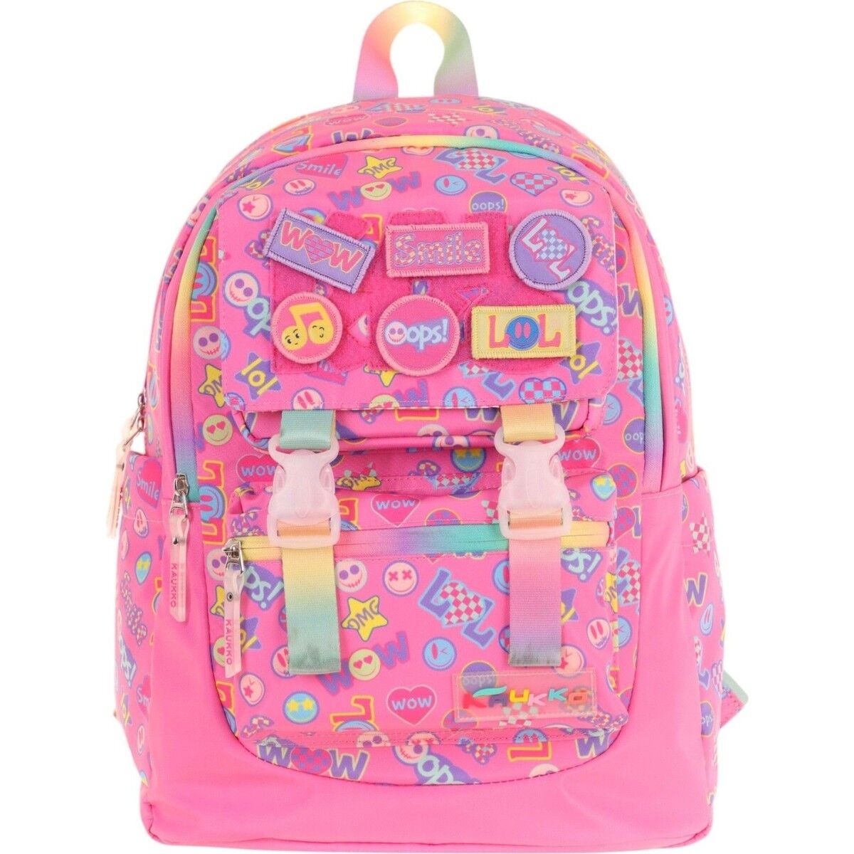 Kaukko Kids Kız Çocuk Armalı Yazı Desenli Ilkokul Okul Sırt Çantası (Dört Bölmeli) - Pembe - L5237