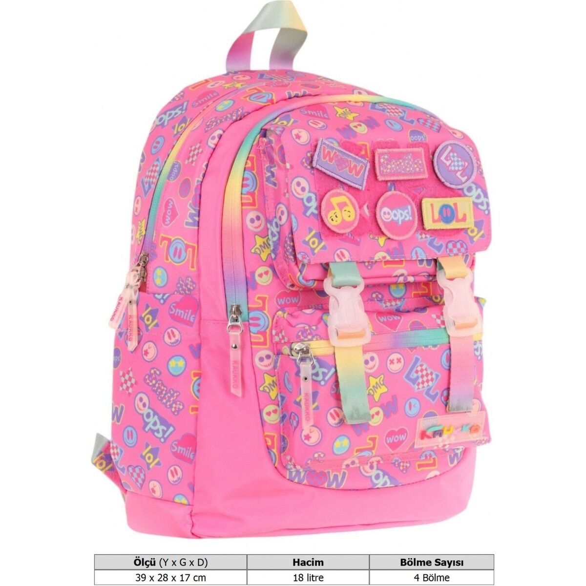 Kaukko Kids Dört Bölmeli Armalı Kız Çocuk Okul Sırt Çantası - Renk: Pembe