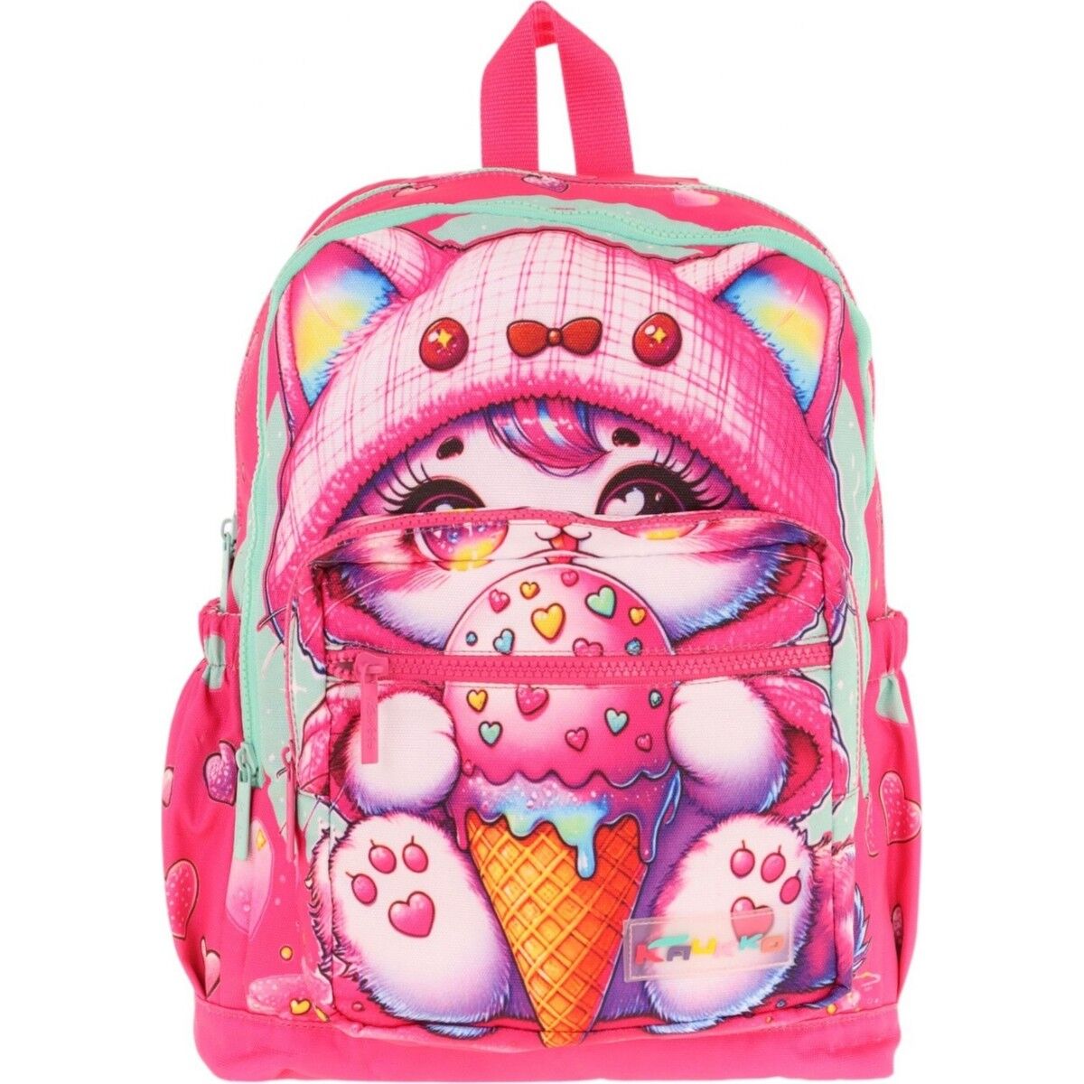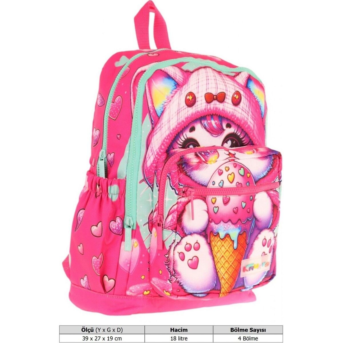 Kaukko Dört Bölmeli (Kız Çocuk - Pembe - Dondurma Yiyen Kedi) - Ilkokul Okul Sırt Çantası - L5250