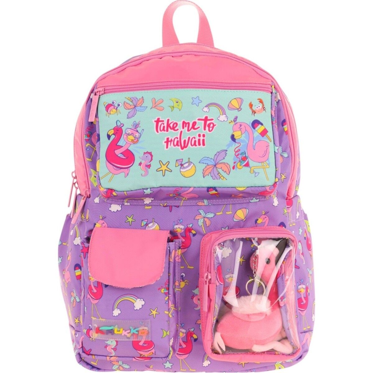 Kaukko Kız Çocuk Peluş Flamingolu Ilkokul Okul Sırt Çantası - Mor Pembe - L5240