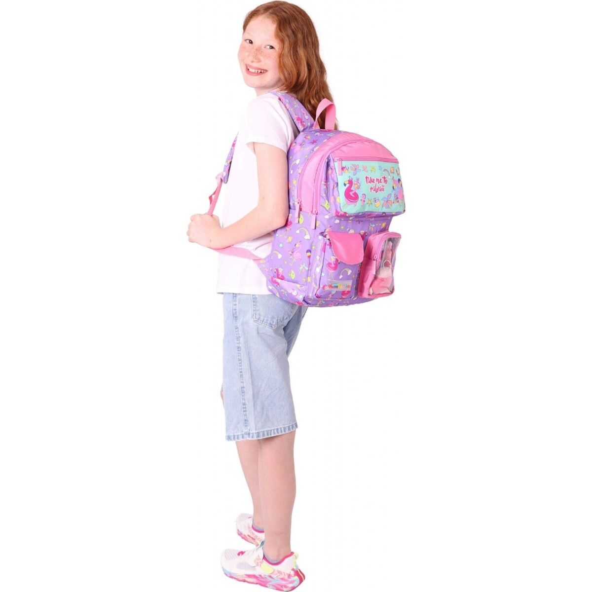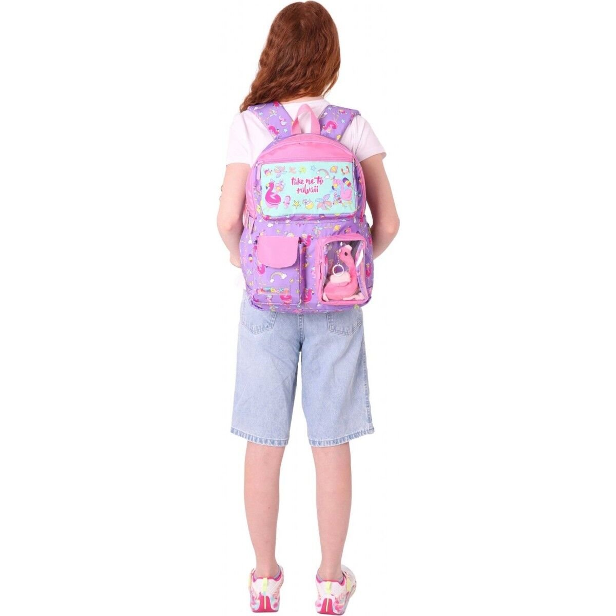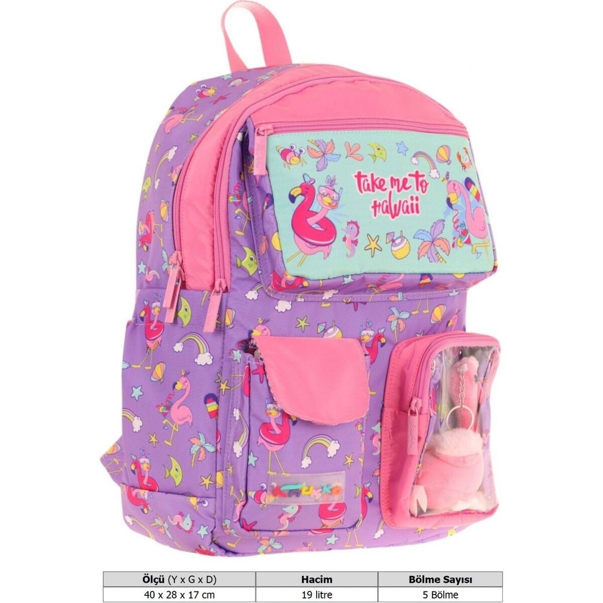 Kaukko Kids Beş Bölmeli Peluş Flamingolu İlkokul Kız Çocuk Okul Sırt Çantası - Mor Pembe - KK-L5240