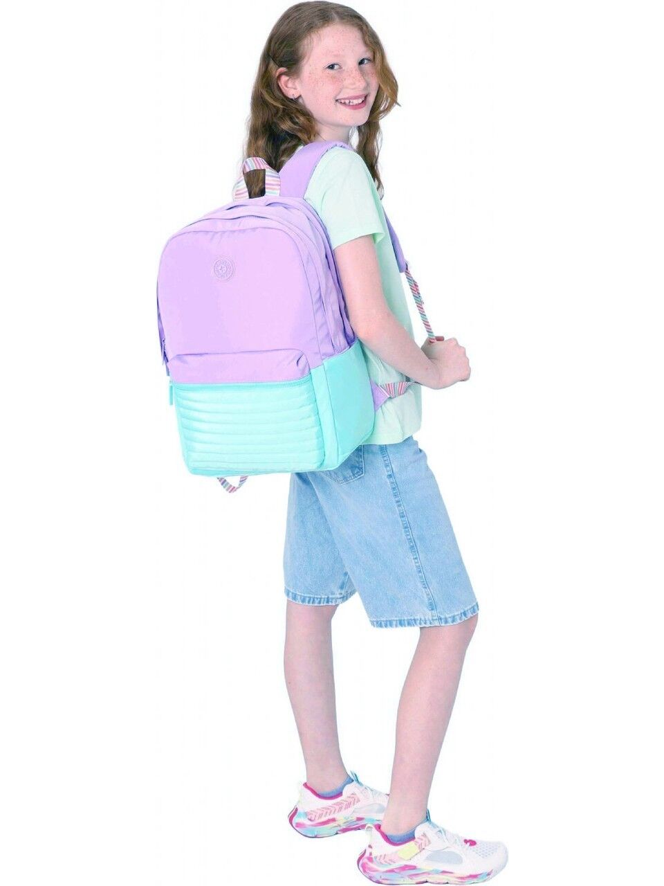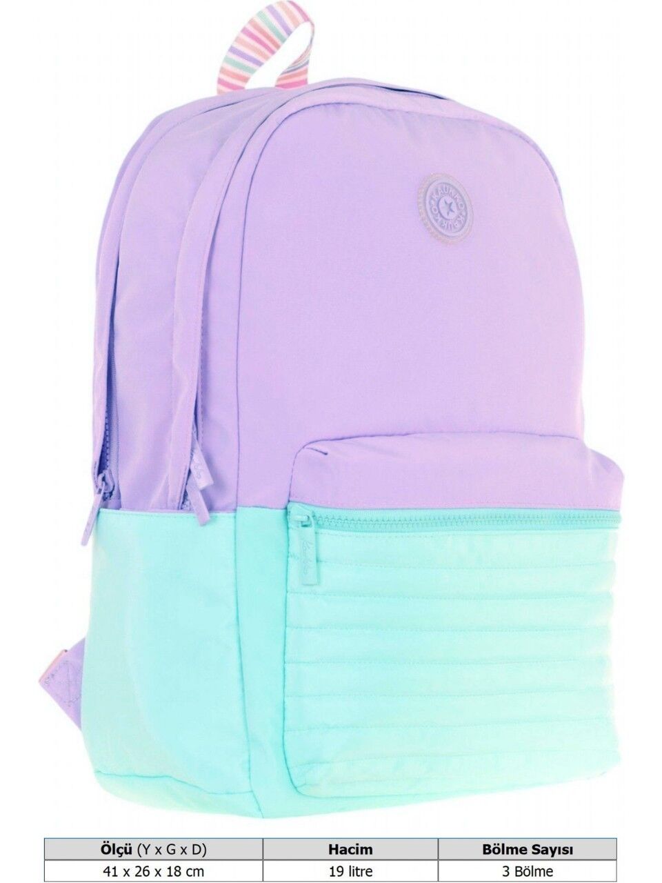 Kaukko Quick Kız Çocuk Üç Bölmeli Mor Turkuaz Kapitone Detaylı Okul Sırt Çantası - K1791