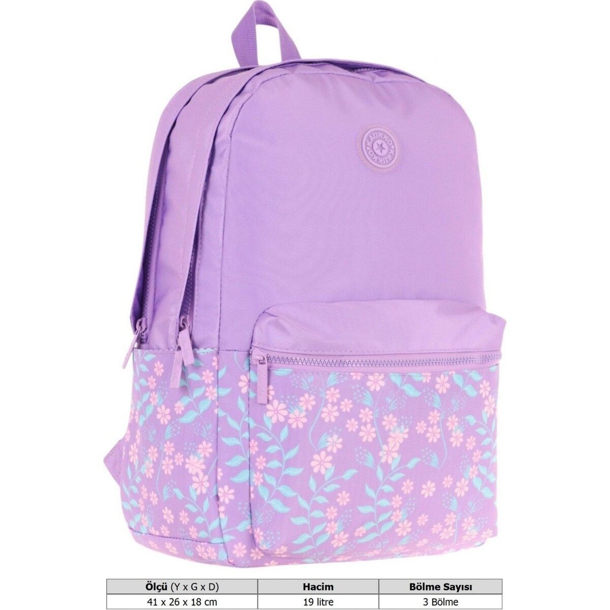 Kaukko Soft Floral Kız Çocuk Üç Bölmeli Mor Çiçekli Okul Sırt Çantası - K1793