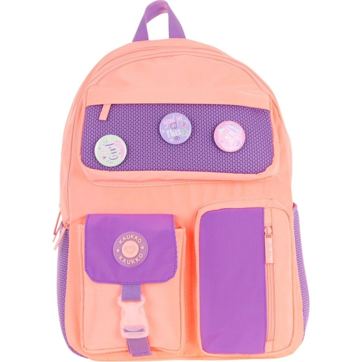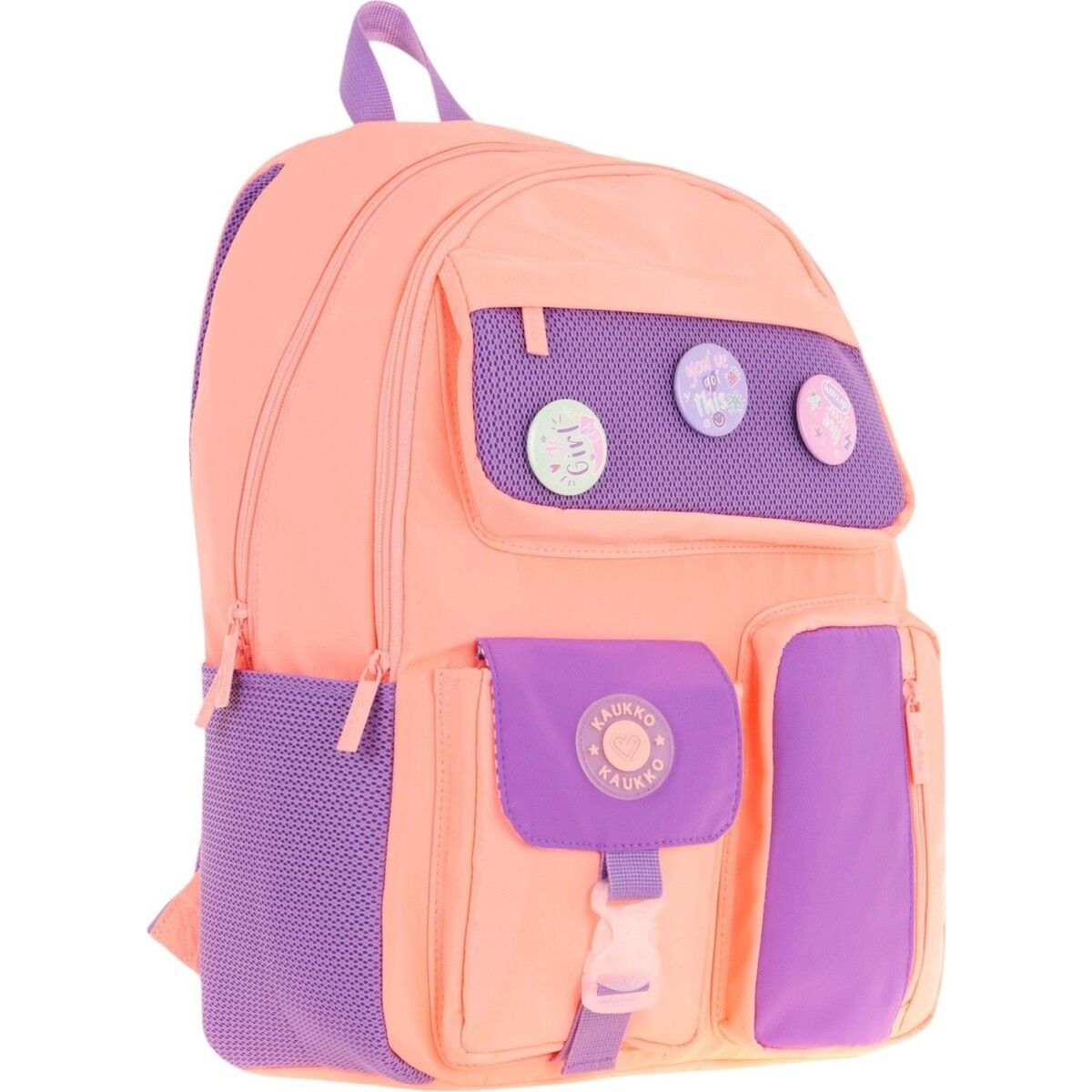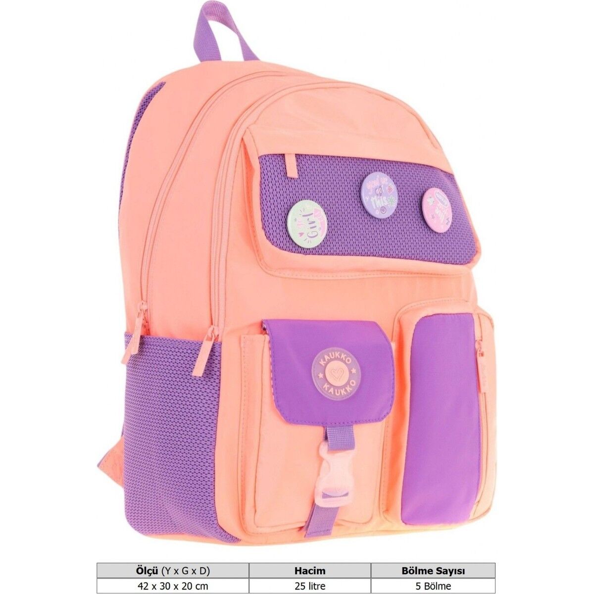 Kaukko Travel Beş Bölmeli Rozetli Kız Çocuk Okul ve Günlük Sırt Çantası - Somon Mor - K1825