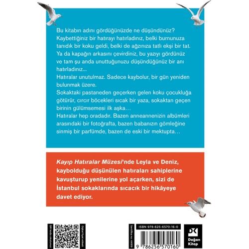 Bu Kitabın Adını Gördüğünüzde Ne Düşündünüz? Kaybettiğiniz Bir Hatırayı Hatırladınız, Belki Burnunuza Tanıdık Bir Koku Geldi, Belki De Ağzınıza Tatlı Ekşi Bir Tat. Ya Da Kapağın Arkasını Çevirdiniz, Bu Yazıyı Gördünüz Ve Tam Şu Anda Unuttuğunuzu Düşündüğünüz Bir Anı Hatırladınız... Hatıralar Unutulmaz. Sadece Kaybolur, Bir Gün Yeniden Bulunmak Üzere. Sokaktaki Pastaneden Geçerken Gelen Koku Çocukluğa Götürür, Cırcır Böcekleri Sıcak Bir Yaza, Sokaktan Geçen Birinin Gülümsemesi İlk Aşka… Hatıralar Hep Oradadır. Bazen Anneannenizin Albümleri Arasındaki Bir Fotoğrafta, Bazen Babanızın Gömleğine Sinmiş Bir Parfümde, Bazen De Eski Bir Mektupta… Kayıp Hatıralar Müzesi’nde Leyla Ve Deniz, Kaybolduğu Düşünülen Hatıraları Sahiplerine Kavuşturup Yenilerine Yol Açarken, Sizi De İstanbul Sokaklarında Sıcacık Bir Hikâyeye Davet Ediyor.