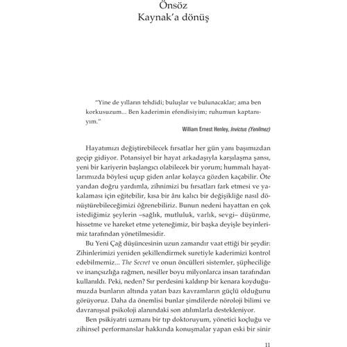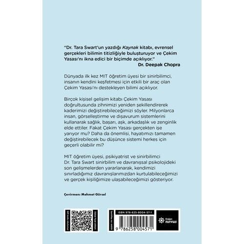 “Dr. Tara Swart’un yazdığı Kaynak kitabı, evrensel gerçekleri bilimin titizliğiyle buluşturuyor ve Çekim Yasası’nı ikna edici bir biçimde açıklıyor.” Dr. Deepak Chopra Dünyada ilk kez MIT öğretim üyesi bir sinirbilimci, insanın kendini keşfetmesi için etkili bir araç olan Çekim Yasası’nı destekleyen bilimi açıklıyor. Birçok kişisel gelişim kitabı Çekim Yasası doğrultusunda zihnimizi yeniden şekillendirerek kaderimizi değiştirebileceğimizi söyler. Milyonlarca insan, görselleştirme ve dışavurum sistemlerini kullanarak sağlık, başarı, aşk, arkadaşlık ve zenginlik elde ettiler. Fakat Çekim Yasası gerçekten işe yarıyor mu? Daha da önemlisi, hayatımızı tamamen değiştirebilecek bu düşünce sistemi herkes için geçerli olabilir mi? MIT öğretim üyesi, psikiyatrist ve sinirbilimci Dr. Tara Swart sinirbilim ve davranışsal psikolojideki son gelişmelerden yararlanarak, kendimizi sınırladığımız davranışlarımızdan kurtulabileceğimizi ve gerçek kişiliğimize ulaşabileceğimizi gösteriyor.