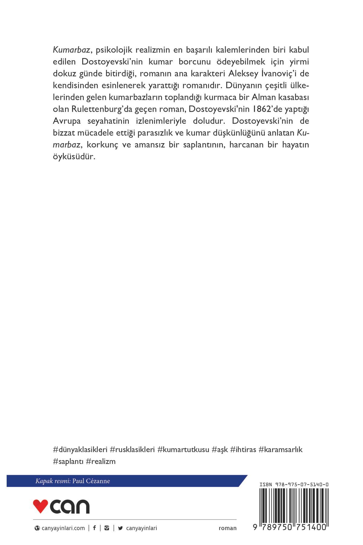 Kumarbaz, psikolojik realizmin en başarılı kalemlerinden biri kabul edilen Dostoyevski’nin kumar borcunu ödeyebilmek için yirmi dokuz günde bitirdiği, romanın ana karakteri Aleksey İvanoviç’i de kendisinden esinlenerek yarattığı romanıdır. Dünyanın çeşitli ülkelerinden gelen kumarbazların toplandığı kurmaca bir Alman kasabası olan Rulettenburg’da geçen roman, Dostoyevski'nin 1862’de yaptığı Avrupa seyahatinin izlenimleriyle doludur. Dostoyevski’nin de bizzat mücadele ettiği parasızlık ve kumar düşkünlüğünü anlatan Kumarbaz, korkunç ve amansız bir saplantının, harcanan bir hayatın öyküsüdür.