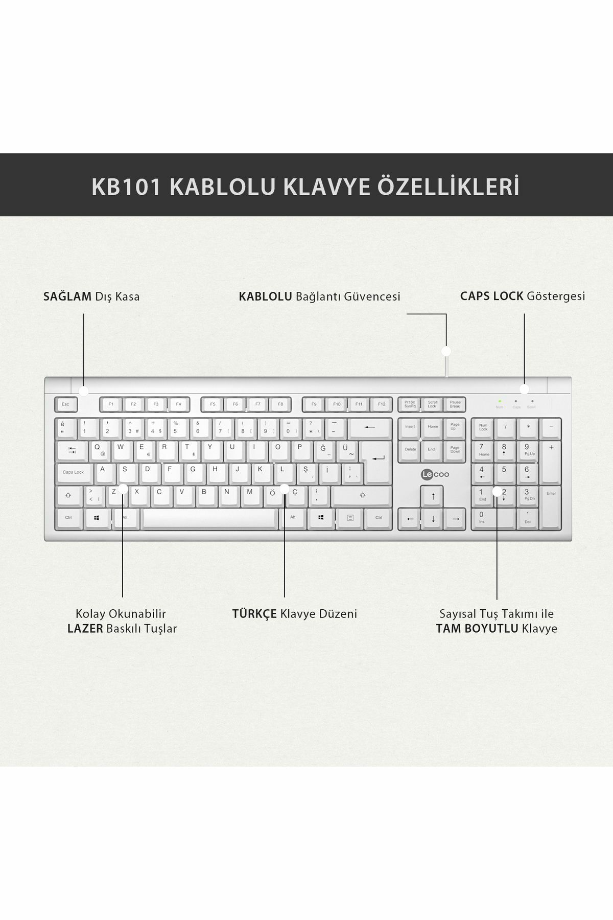 Lecoo Kb101 Beyaz Kablolu Q Klavye