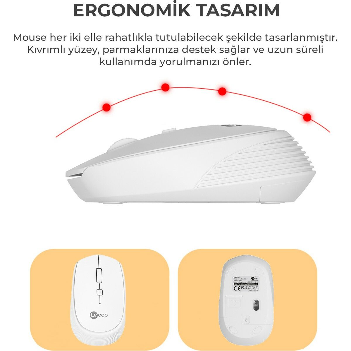 Lecoo KM2001 Kablosuz Türkçe Q Klavye & Mouse Set Beyaz