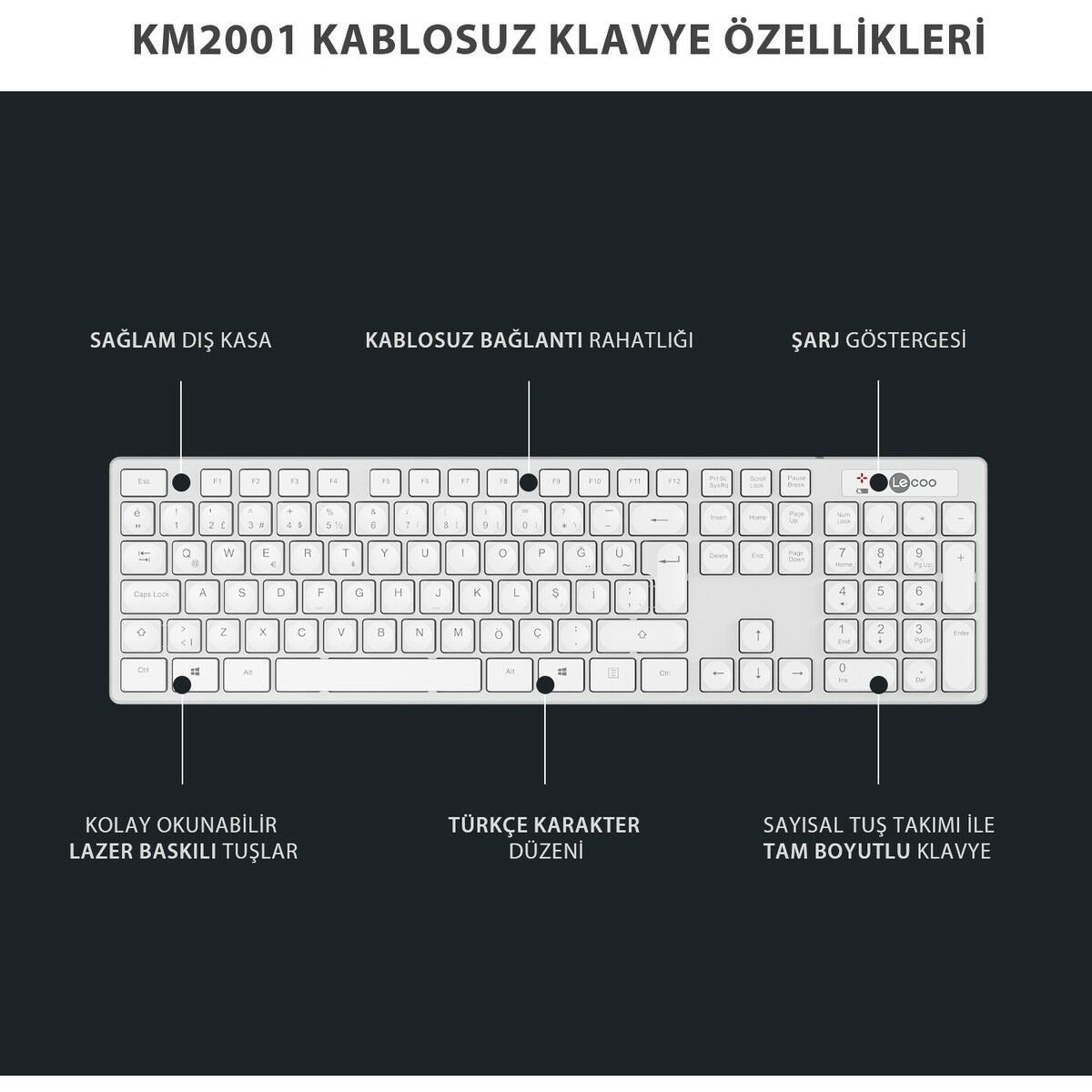Lecoo Km2001 Klavye & Mouse Kablosuz Set Beyaz