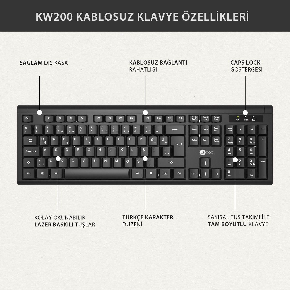 Lecoo KW200 Kablosuz Türkçe Q Klavye & Mouse Set Siyah