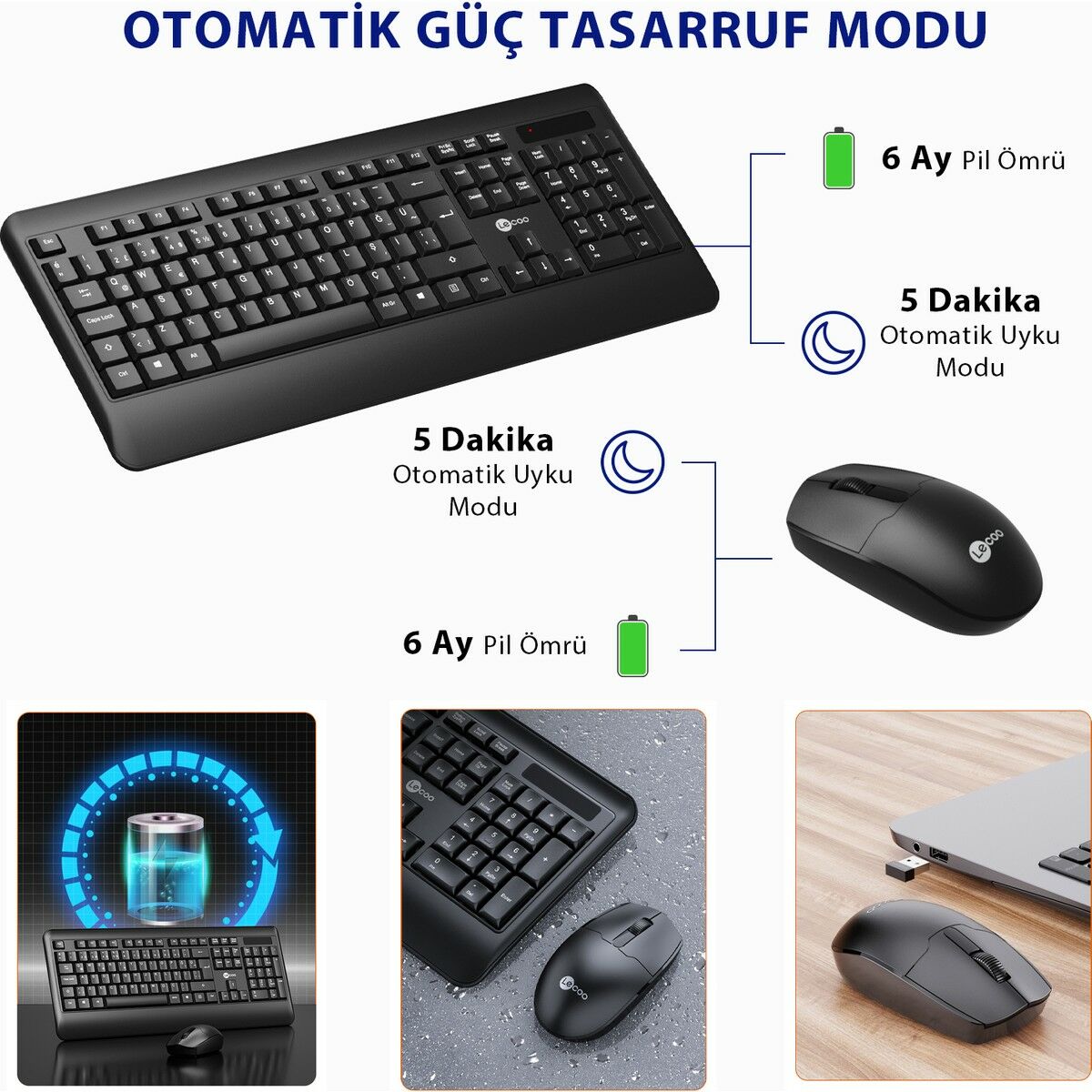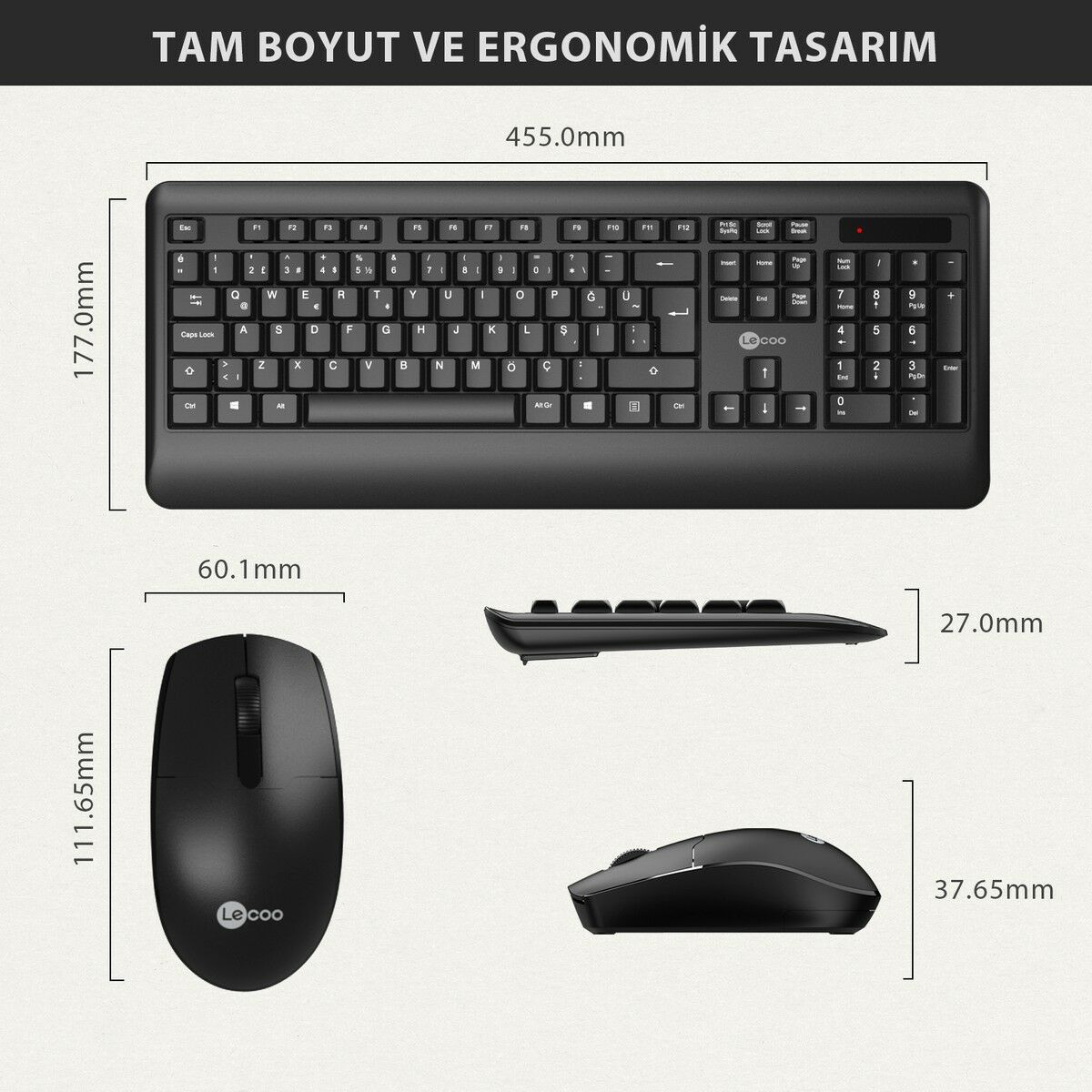 Lecoo KW202 Kablosuz Türkçe Q Klavye & Mouse Set Siyah