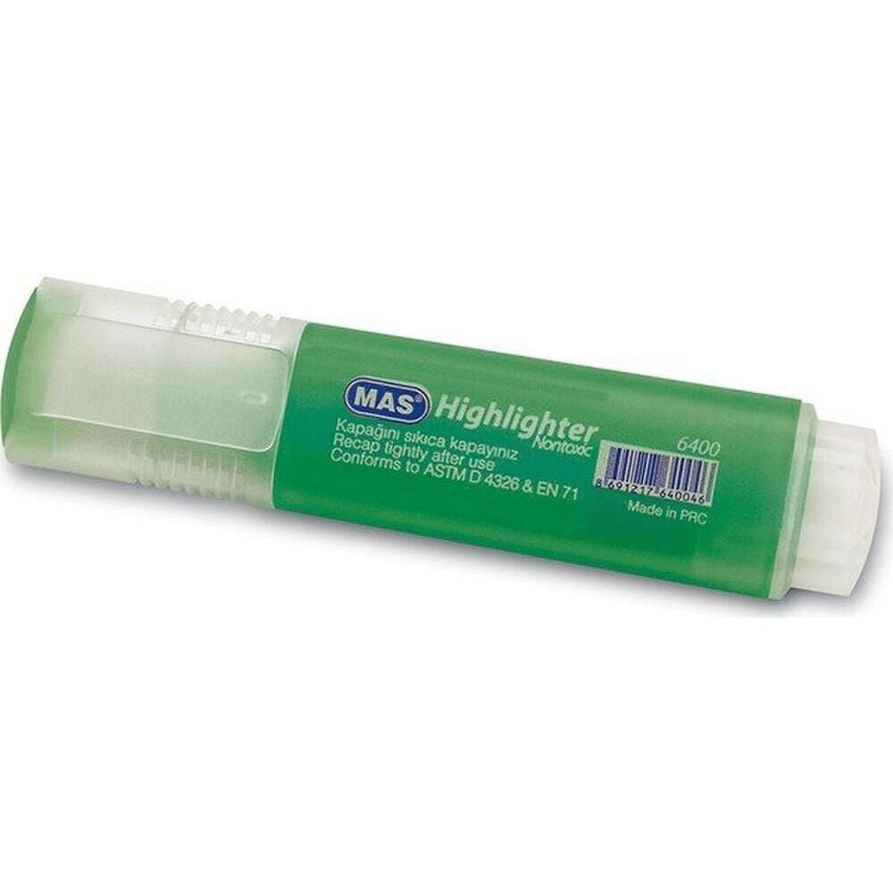 mas 6400 fosforlu kalem yeşil yüksek floresan özellikli ofis ve faks kağıtlarına uygun. Hızlı kurur. 6 mm uç. Suya ve ışığa dayanıklı fosforlu kalemler.