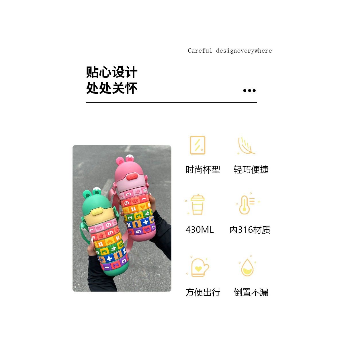 Tarz: Düz Bardak Astarı Malzemesi: 316 Paslanmaz Çelik Kabuk Malzemesi: 201 Paslanmaz Çelik Yalıtım Performansı: 0-6 Saat Malzeme: 316 Paslanmaz Çelik Tarz: Karikatür İşlev: Ev, Taşınabilir, İzolasyon Renk: Turuncu, Mavi, Yeşil, Pembe Kapasite: 430ml Boyut: 24,5×8×8cm Paket listesi: su bardağı×1