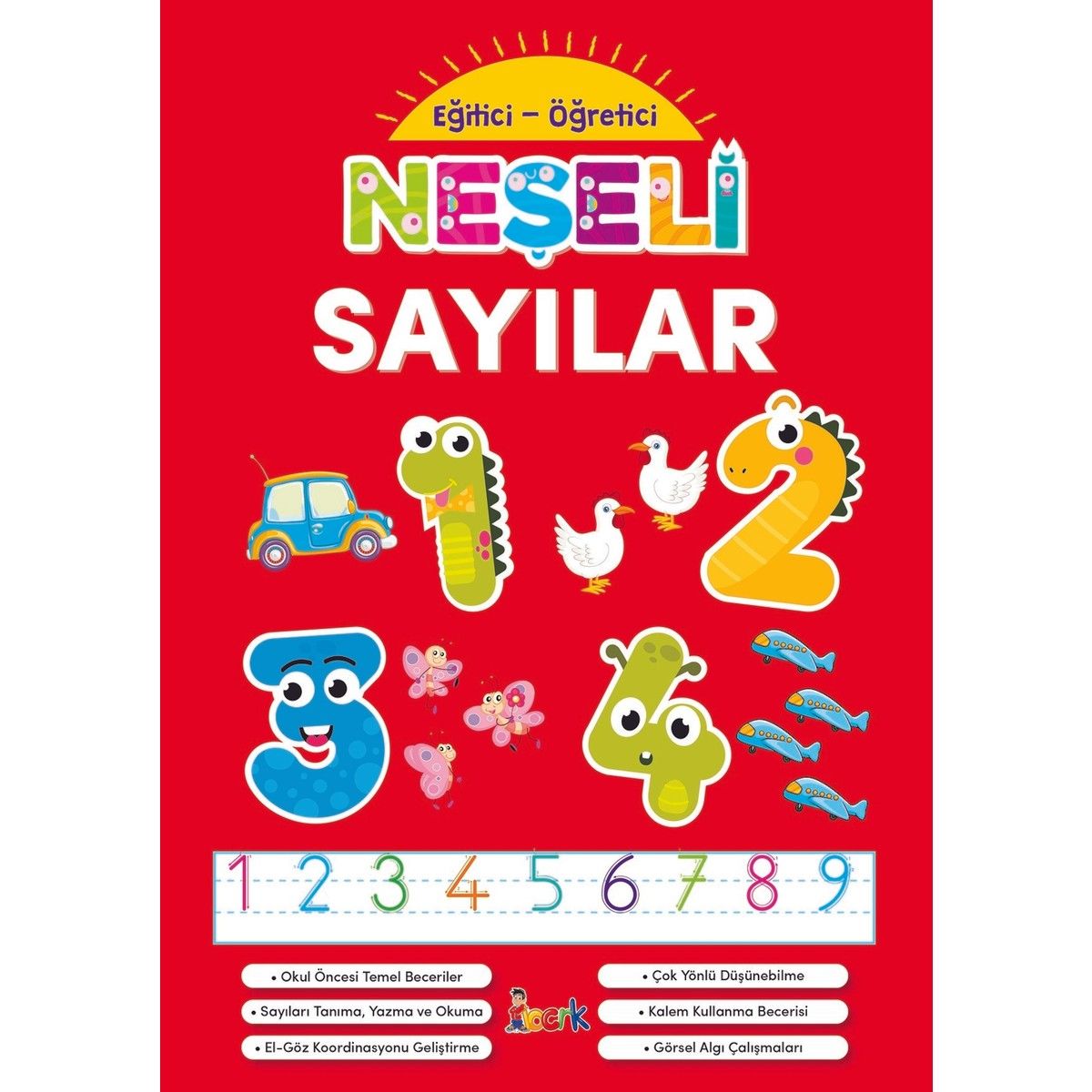 Neşeli Sayılar ile çocuklarınız hem eğlenecek hem de öğrenecek. Okul öncesi temel beceriler Çok yönlü düşünebilme Sayıları yazma, tanıma ve okuma Kalem kullanma becerisi El- göz koordinasyonunu geliştirme Görsel algı çalışmaları