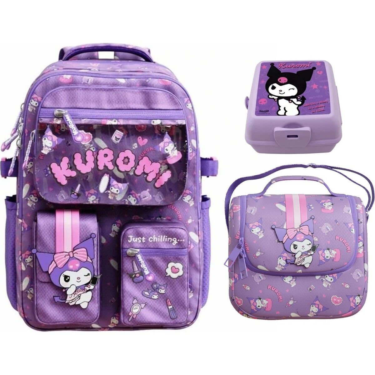 Kuromi Orijinal Lisanslı Çanta + Beslenme Çantası + Beslenme Kutusu Set J-4