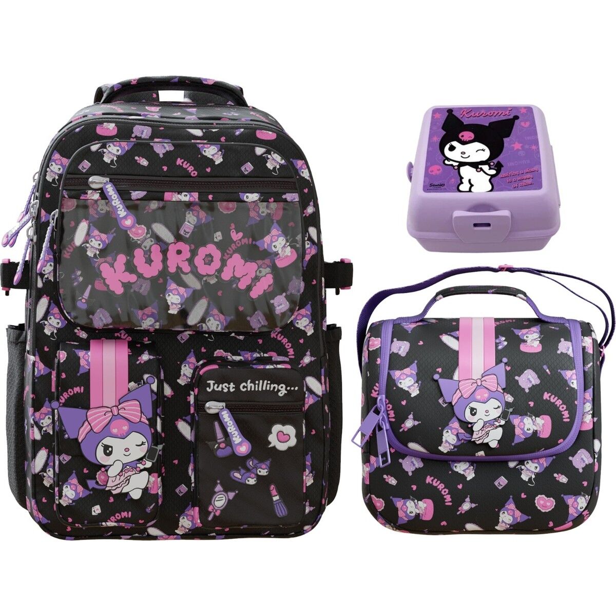 Kuromi Orijinal Lisanslı Çanta + Beslenme Çantası + Beslenme Kutusu Set L-4