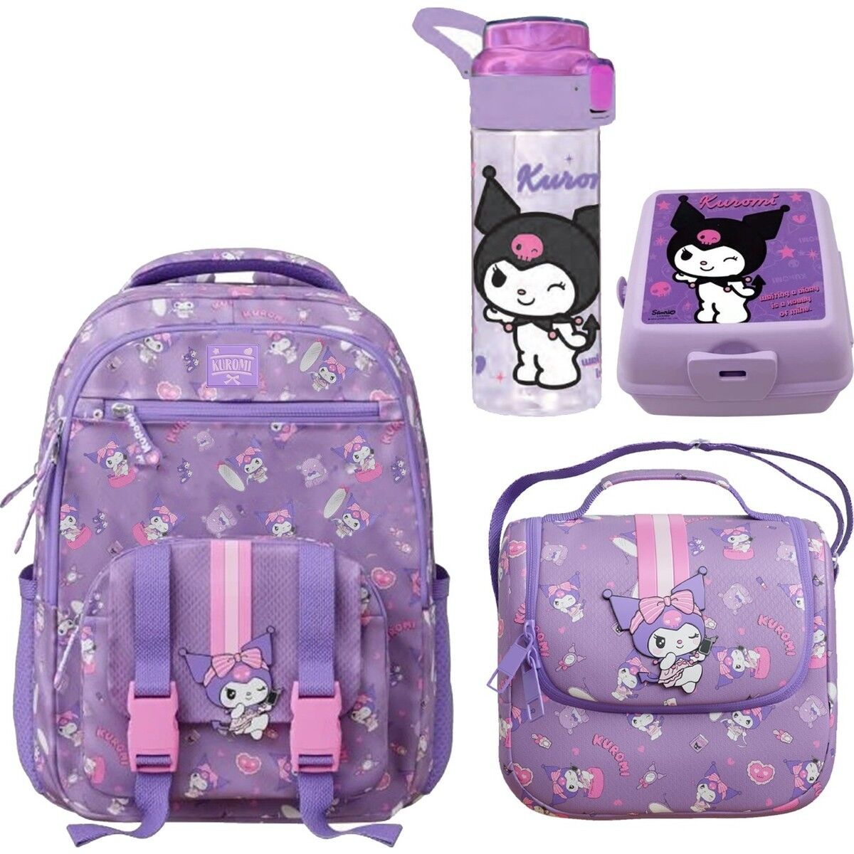 Kuromi Orijinal Lisanslı Çanta + Beslenme Çantası + Suluk + Beslenme Kutusu Set I-1