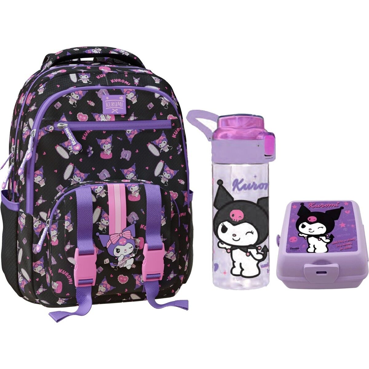 Kuromi Orijinal Lisanslı Çanta + Suluk + Beslenme Kutusu Set K-3