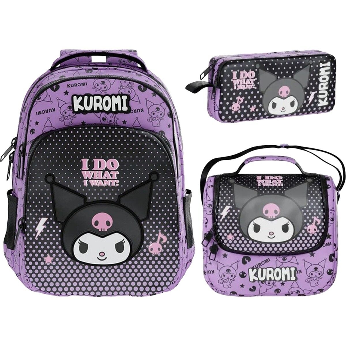 Kuromi Orjinal Lisanslı Çanta+ Beslenme Çantası+ Kalemlik Set I-1