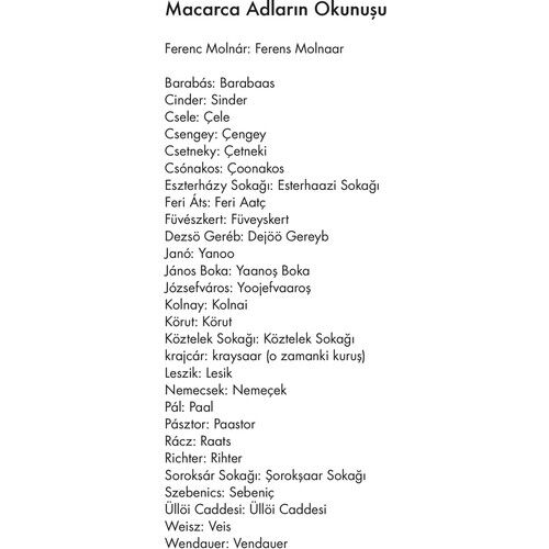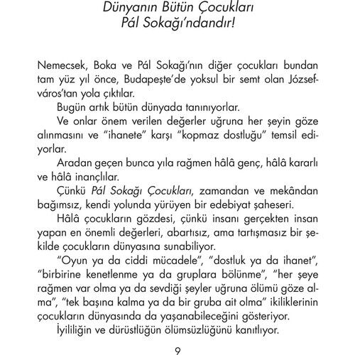 Nemecsek, Boka ve Pál Sokağı’nın öbür çocukları 1907 yılında Budapeşte’nin yoksul Józsefváros semtinden yola çıktılar. Bugün artık bütün dünyada tanınıyorlar. Bugüne kadar her yaştan milyonlarca insan onların dokunaklı hikâyesini okudu; tıpkı Budapeşteli çocuklar gibi onlar da Boka’nın cesaretine hayran oldu, Nemecsek’in ürkek ama kararlı kahramanlığı karşısında gözyaşlarını tutamadı.