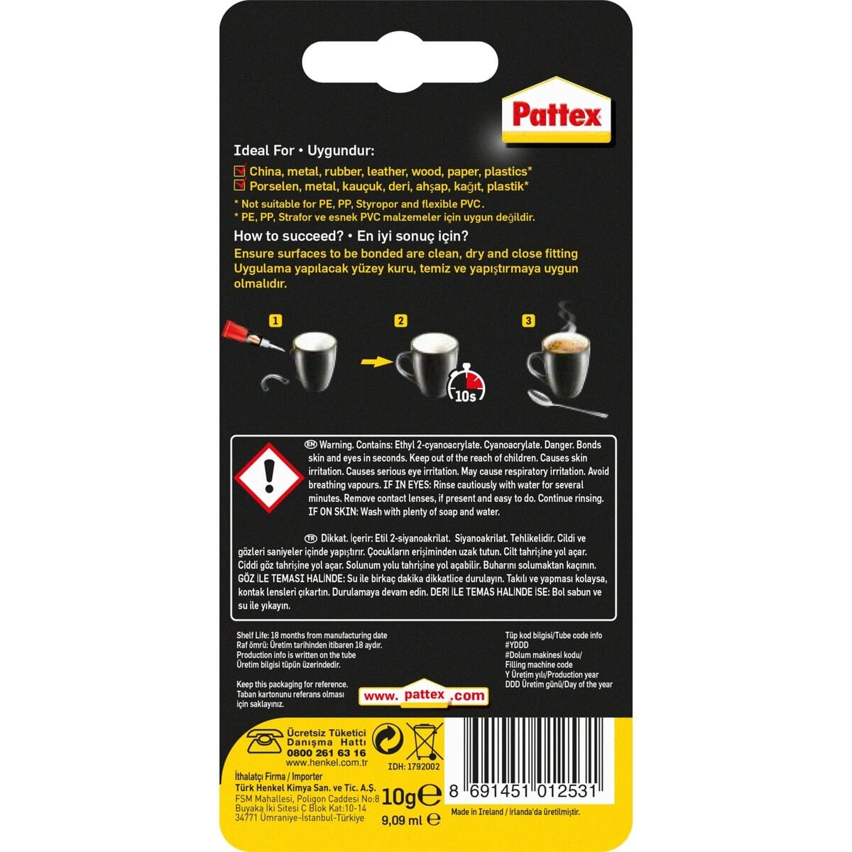 Pattex Süper Hızlı Yapıştırıcı 10 g Plastik, Ahşap ve Metal İçin Uygun Çok Amaçlı
