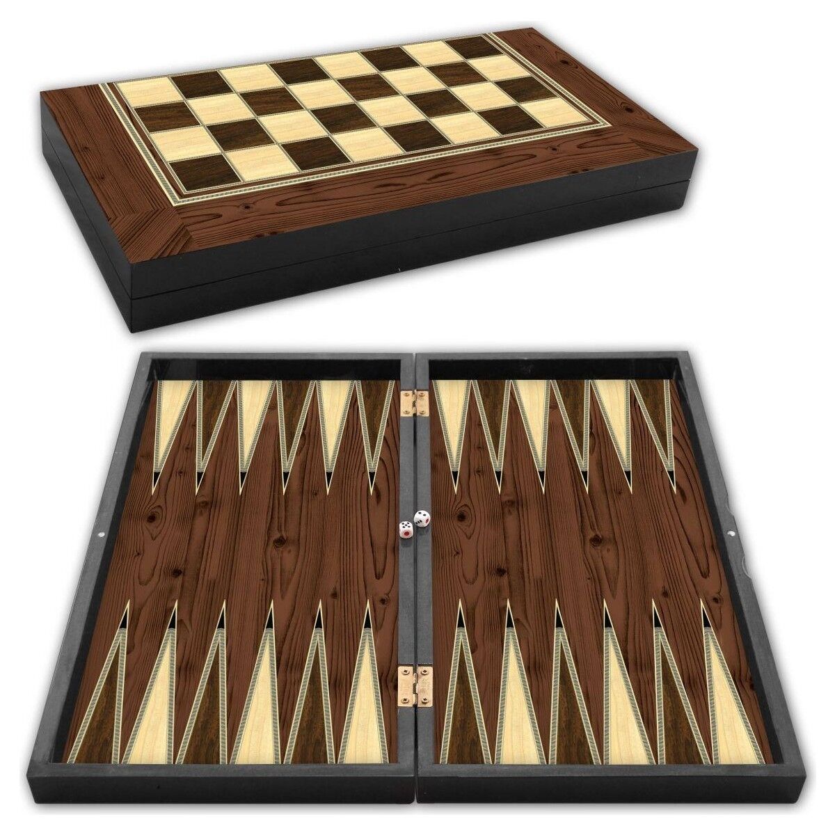 Star Platin Kaplama Büyük Boy Tavla Takımı 25,5x48,5x6,3 cm 36 mm Pullar ve 9 mm Zarlar