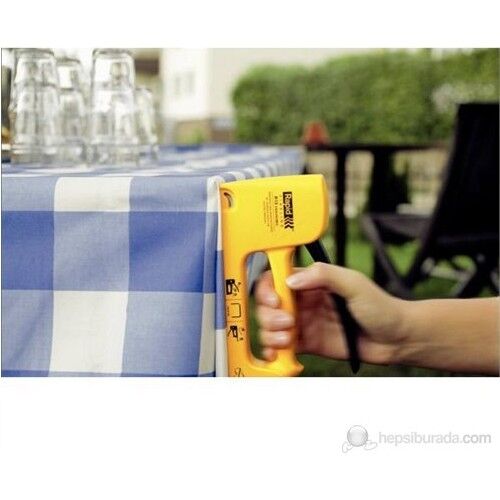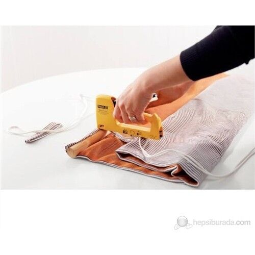 Hobi ve DIY uygulamaları için zımba tabancası. Ergonomik tutuş. Ev dekoru, tekstil sabitleme, döşeme yenileme ve hafif onarım işleri için uygun.
