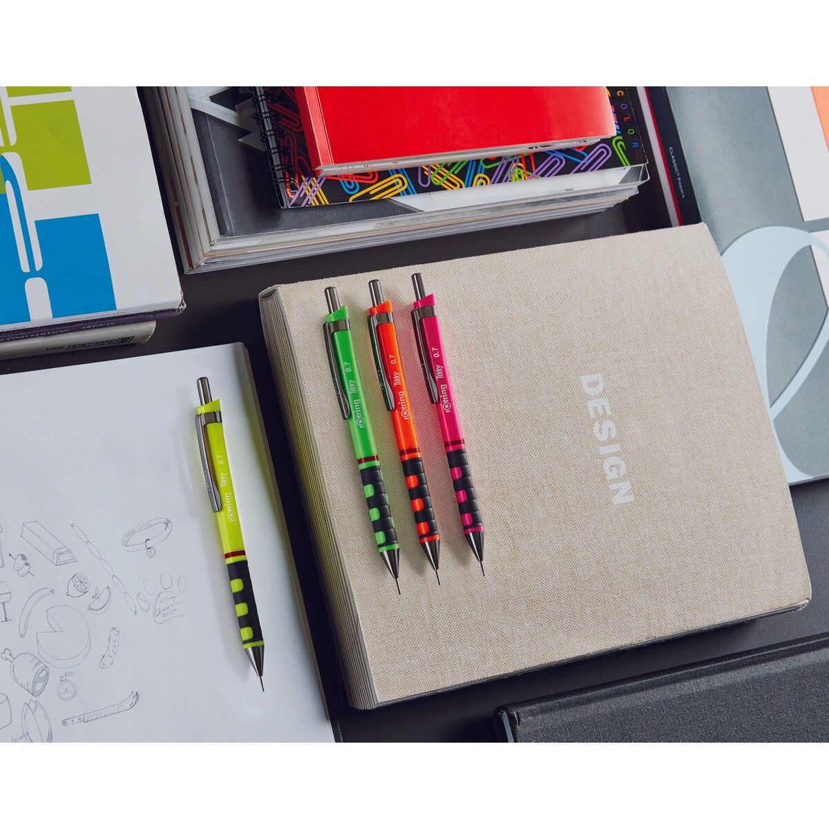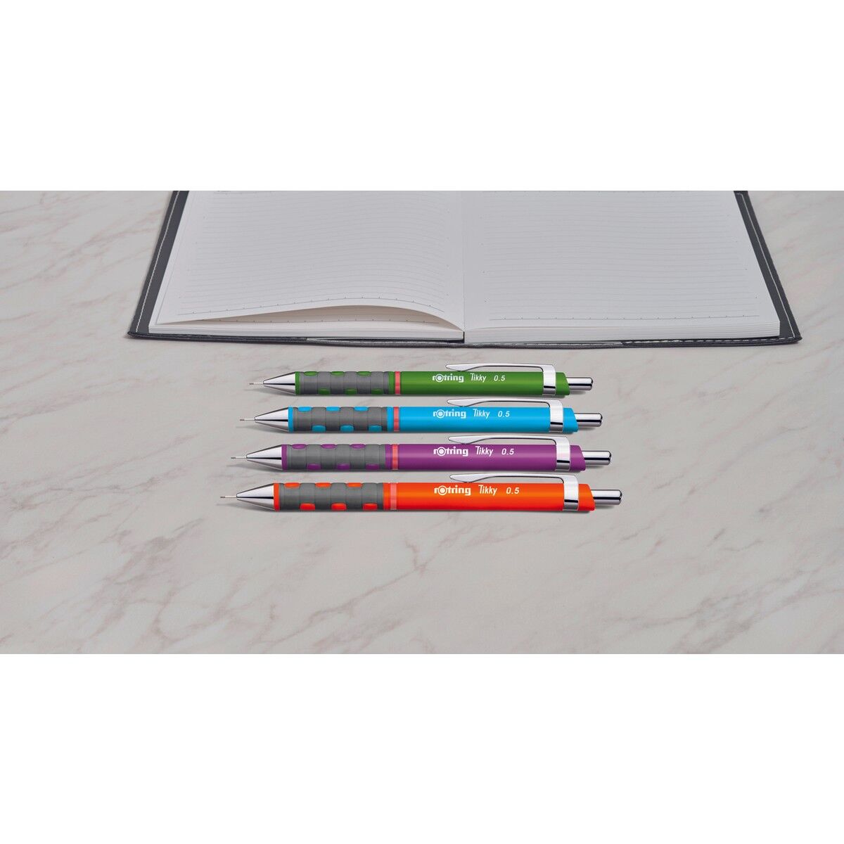 11 farklı renk alternatifiyle dahiyane bir araç, Tikky Mekanik Kurşun Kalem.n• Yazım, çizim ve karalamalarda en iyi sonuç ve konfor sağlayan yumuşak tutma yeri.n• Esnek ve dayanıklı yapısı sayesinde uç kırılma sorununu önleyen yüksek polimer yedek uç.n• Gövde üzerinde yer alan ISO 3098’ce belirlenen uç kalınlıklarını gösteren renk kodlamaları istenen kalemin rahatça bulunmasını sağlar.n• 0.5 ve 0.7 mm uç kalınlığı alternatifi.n• Bordo, siyah, beyaz, mavi, kırmızı, sarı, turuncu, mor, pembe gövde renk alternatifi.n