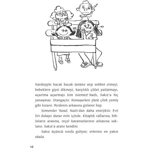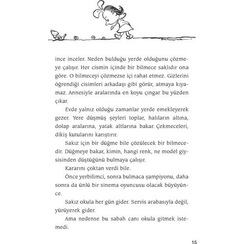Sakız Kızın Günleri - Sevim Ak Sakız, sekiz yaşında bir kız çocuğu. Annesi, babası, kardeşi Nazlı ve Yusuf adını koyduğu semenderiyle bir ara sokaktaki apartman dairesinde yaşıyor. Üçüncü sınıfa gidiyor; evlerine en yakın okula. Babasının küçük bir şekerci dükkanı var. Sakız''ın bu dükkana gitmesi artık yasak. Çünkü çok şeker yemekten iki dişi sağlam kaldı; ötekilerin hepsi çürük. Utangaç bir kız Sakız. Konuşurken yüzü çelik gibi kızarır. Miniciktir. Ama boyunun kısalığından hiç yakınmaz. Sakız Kızın Günleri -okuyunca siz de göreceksiniz- çok neşeli geçer. Halası, bir gezi dönüşü, ona, aydan kopup dünyamıza düşmüş bir taş parçası getirir. Bu aytaşı ile Sakız Kız''ın neler yaptığını okuyunca gülmekten yerlere yatacaksınız. Hele Rüzgar Adam''la karşılaşması, ona ne renkli günler geçirtecek. Ya televizyonda izlediği ''Unutulmayan Anılar'' programına yazıp gönderdiği o uyduruk öykü, başına ne işler açacak. Sevim Ak''ın yazdığı en keyifli kitaplardan biri. Behiç Ak da birçok resimle süsledi bu güzel kitabı.