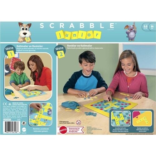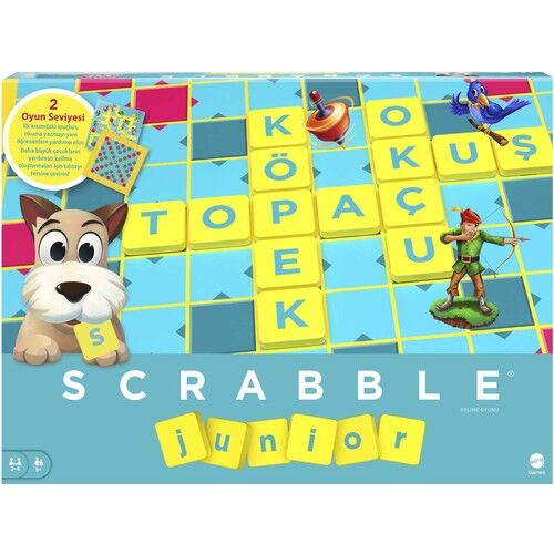 Çocukların sevilen bir kelime oyununu oynamalarının şahane bir yolu! Junior Scrabble ile kısa kelimeler ve renkli resimler, dizme tahtasındaki harf taşlarını eşleştirmeyi eğlenceli hale getiriyor. Oyuncular kelimeleri tamamlamak için sayı markalarını topluyor. Tüm taşlar tahtaya dizildiğinde, en fazla sayı markasına sahip olan oyuncu kazanıyor! Oyuncuların kendi kelimelerini yaratabildikleri ileri seviye için oyun tahtasını ters çevirmeniz yeterli. Yani oyun çocuklarla beraber büyüyor! 2 taraflı oyun tahtası, 101 harf taşı, 44 sayı markası ile acemi ve ileri oyun kuralları dahildir. 2-4 oyuncu 5 yaş ve üzeri.