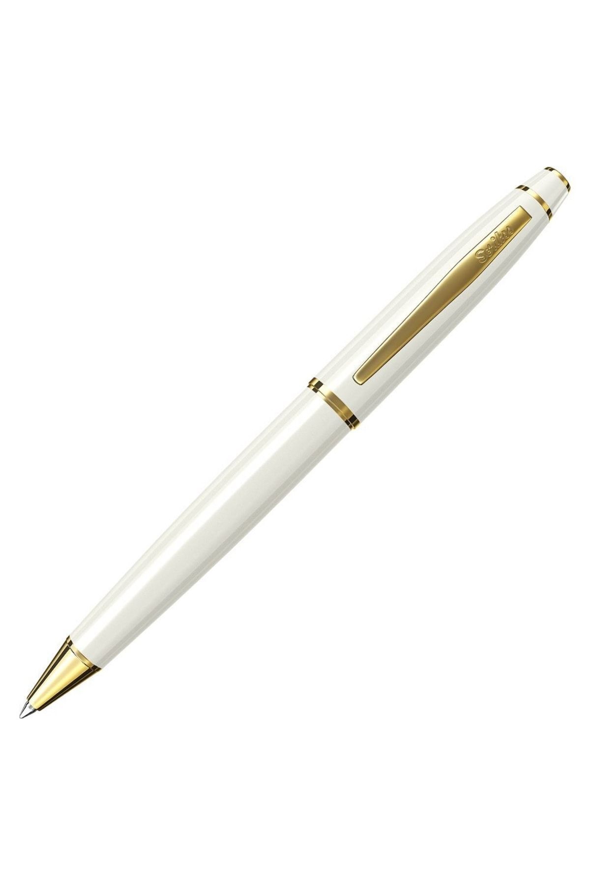 Scrikss Tükenmez Kalem İnci beyazı gövde ve kapak; Altın kaplama klips, halka ve uç; Çevirmeli otomatik mekanizma; Özel kutusu ile birlikte;