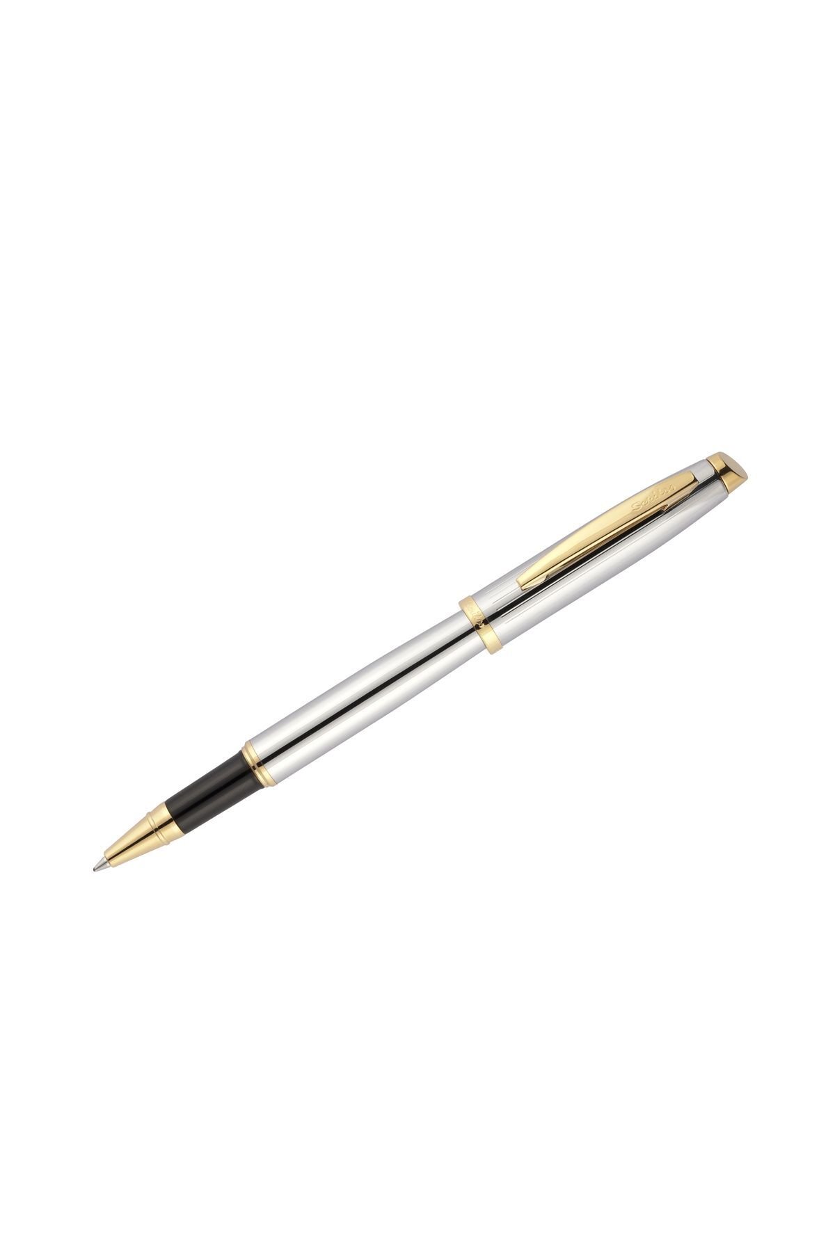 Scrikss Gold Krom Roller Kalem 39 Özellikleri ve Açıklamaları Scrikss Gold Krom Roller Kalem 39 Altın kaplama klips, halka ve uç, Krom kaplama gövde ve kapak, Siyah lake kaplama metal ön seksiyon,
