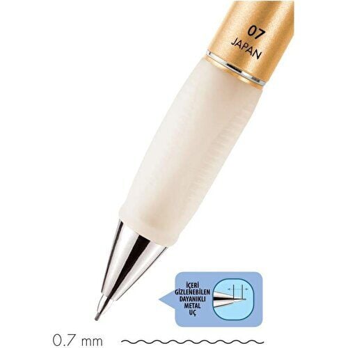 - 0.7 mm uç kalınlığında 6 metalik renk seçeneği