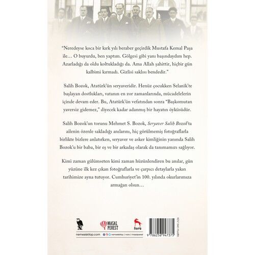 Salih Bozok, Atatürk’ün seryaveridir. Henüz çocukken Selanik’te başlayan dostlukları, vatanın en zor zamanlarında, mücadelelerin içinde devam eder. Bu, Atatürk’ün vefatından sonra “Başkomutan yaversiz gidemez,” diyecek kadar adanmış bir hayatın öyküsüdür.