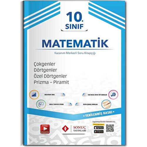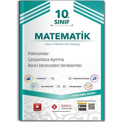 Sonuç Yayınları 10. Sınıf Matematik Fasikülleri Kitap üzerinde yer alan kodların uygulama üzerinde okutulması ile birlikte öğrenciler çözüm videolarına erişebilirler. Öğretmene soru götürüp çözdürmeyi beklemeden hızlı bir şekilde cevap videolarına erişilebilir ve istenilen başarılar elde edilebilir. Kolaydan zora doğru ilerleyen yapısı ile her seviyen öğrenciye hitap etmektedir.