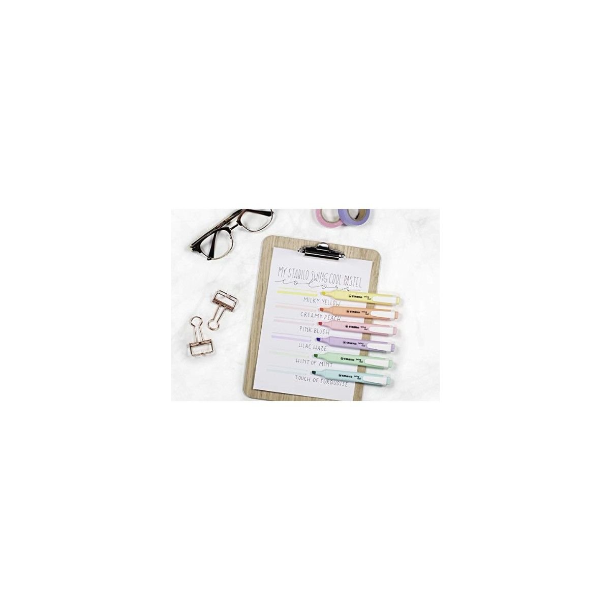 Boyutları ve klipsli kapağı sayesinde taşımada kolaylık sağlayan Stabilo Swing Cool Pastel 4'Lü Paket, pastel tonlardaki renkleriyle kaliteli bir görüntü ortaya koymaktadır. İki farklı uç kalınlığı sayesinde (1 mm, 4 mm), ev, ofis ve okul gibi birçok kullanım alanında kullanıcılara seçenekler sunmaktadır. Kağıt, kopya kağıdı ve faks kağıdı gibi çeşitli kullanım alanlarına sahiptir. Kapağı açık unutmanız durumunda, 4 saate kadar kuruma gözlemlenmez.