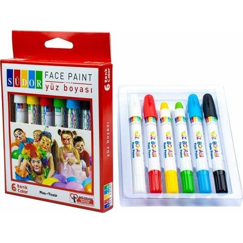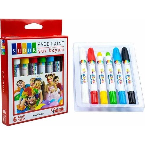 Südor yüz boyası ile çcouklarınız renkli yüzler, eğlenceli ve yaratıcı etkinlikler yapabilir. Südor yüz boyası çocuğunuzun okul, ev ve bahçe aktivitelerine uygundur. Dökülmeyen, akmayan yapısı ile okul çantasında taşıması güvenlidir. Yüz boyaları ile oluşturacağınız etkinlikler ile çocuğunuzun resim yapma, boyama ve çizim becerilerinin gelişmesine katkıda bulunabilir, hayal güçlerinin gelişmesine yardımcı olabilir, onunla kaliteli ve öğretici zamanlar geçirerek gelişimine destek olabilirsiniz. Kalemler akıcı yapıları ile ten üzerinde kayarak kolay boyama sağlar. Yüz boyaları sağlam yapıları ile kırılmaya karşı dayanıklıdır. Her yaş çocuğun ve yetişkinin kullanımına uygundur. Kutusunda muhafaza etmesi kolaydır.