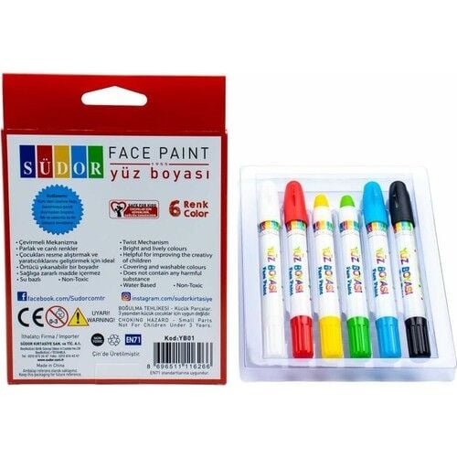 Kalem şeklinde çevirmeli bir yapıya sahip Südor yüz boyaları kullanım açısından kullanışlıdır; erime, dökülme yapmaz.