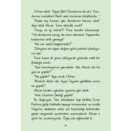 Pınarların evinde gizli bir telaş var! Çok özel birinin doğum günü yaklaşıyor: Ayça Teyze’nin! Pınar ve Orhan sürpriz bir kutlama yapmaya karar veriyorlar. Alican ve diğer çocuklar da onlara katılıyor. Her kafadan bir fikir çıkıyor. Acaba Ayça Teyze’yi en çok ne mutlu eder? Dr. Ayça Kaya doğru beslenme ve sağlıklı büyüme sırlarını çocuklarla paylaşmaya devam ediyor! Sağlık, diyabet, aile, arkadaşlık ve dayanışma temalarını işleyen bu neşeli macerayı çok seveceksiniz!