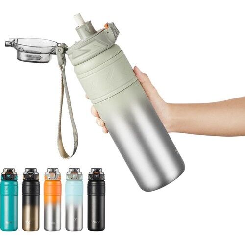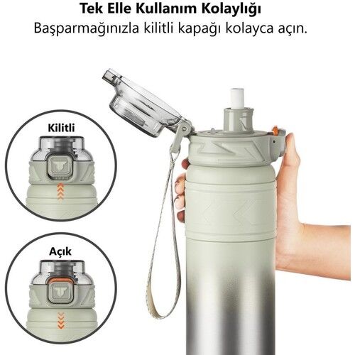 TKK Paslanmaz Çelik Termos Matara 900Ml Gri Yeşil (Pipetli ve Pipetsiz Kullanım)