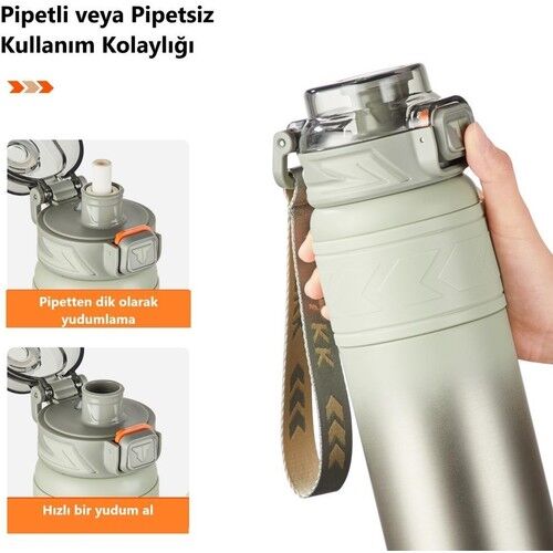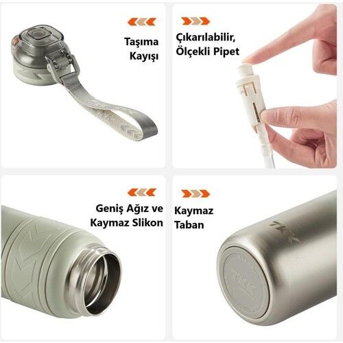 Pipetli bu termos ergonomik yapısı sayesinde hem çocuklar hem yetişkinler için kolay kullanım sağlar; silikon pipet çıkarılarak temizlenebilir.