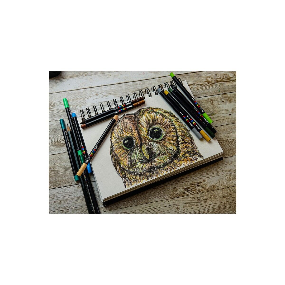Geleneksel balmumlu kalemlerden farklı olarak, daha fazla yağ ve daha az mum içerdiği için hem daha canlı renkler verir, hem de daha yumuşak bir sürüş sunar.