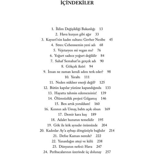Gazeteci Defne Kaman hakkında ‘Neden Nükleer Enerji Değil?” yazısı nedeniyle soruşturma açılmıştır. Duruşmanın yapıldığı Kayseri’de Defne Kaman’a Türkiye’nin önemli çevre hukukçuları, gazeteciler, çevre ve hayvan hakları aktivistleri, STK temsilcileri destek vermektedir. Kayseri’ye 13. yüzyılda hastaları müzikle tedavi eden bir şifahâne ve dünyanın ilk tıp okullarından birini yaptırtan Selçuklu kadın sultanı Gevher Nesibe’nin şehrin merkezindeki büstü gazeteci Defne Kaman şehre geldiği gün gizemli bir şekilde kaybolur. Duruşma sabahı yaşanan bir sürpriz gelişme sonrası bu kez Defne Kaman ortadan kaybolur. Gazeteci kadının Kapadokya’da bir sıcak hava balonunda görüldüğü haberi üzerine tüm dostları onu aramaya giderler. Buket Uzuner, iklim değişikliğinin neden olduğu tabiat felaketlerinin sürdürülebilir temiz enerji çözümleriyle engelleneceğini savunan, hayvan, çocuk, kadın ve çevre hakları destekçisi kadın gazeteci Defne Kaman karakteriyle edebiyata bir iz düşüyor. Yazar, okuru binlerce yıllık kadim Kam geleneğimizin insanı tabiattaki tüm diğer canlılarla eşit kabul eden özünü hatırlamaya davet ediyor. “Hava, Buket Uzuner’den biyotik dengeleri bozulan gezegenimizde nefesimize nefes katacak çarpıcı bir iklimkurgu romanı.” Serpil Oppermann EASLCE Başkanı (Avrupa Edebiyat, Kültür ve Çevre Çalışmaları Derneği) “Buket Uzuner, [Tabiat Dörtlemesi] romanlarında bir ekoşaman gibi, Anadolu kültürü, mitoloji ve tarihten yararlanıp, günlük varoluşumuzla çevremizdeki dünyayı algılayışımız konusunda yüzleşmek için bir keşfe çıkıyor.” Pınar Batur, Vassar College, USA Ufuk Özdağ, Hacettepe Üniversitesi